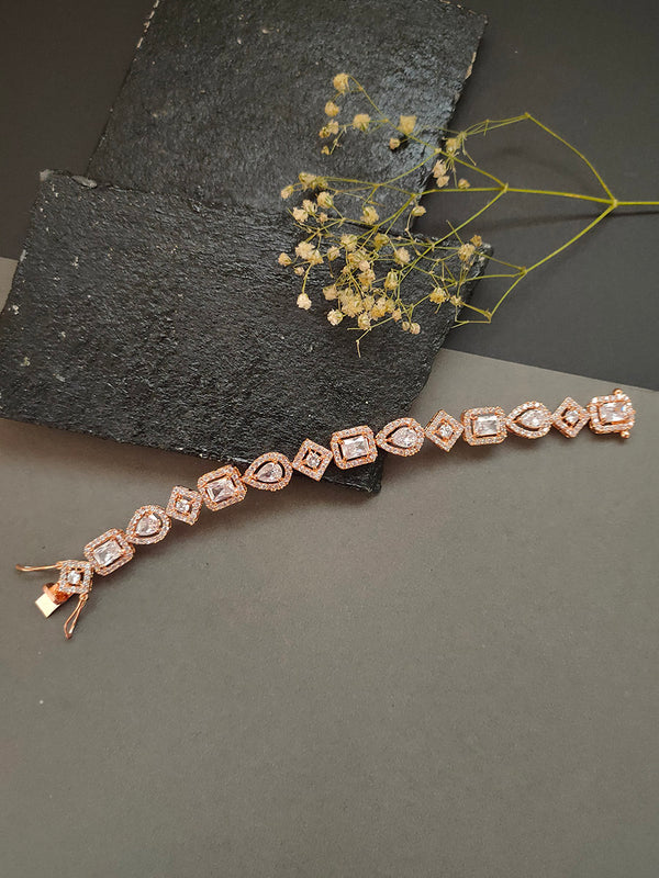 Pink Color Silver Plated Faux Diamond Bracelet (1 Piece) - CZBRAC87P