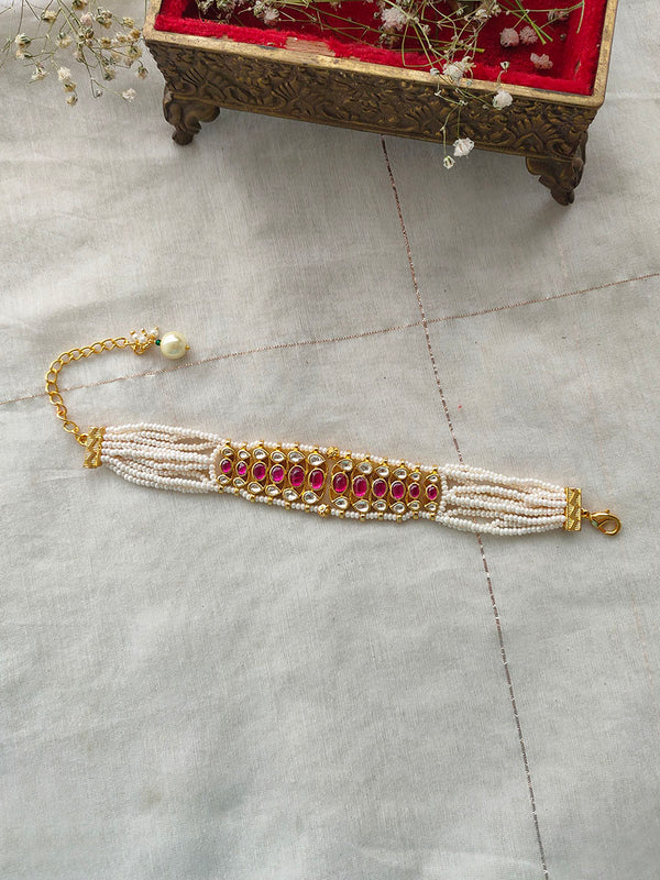 Pink Color Gold Plated Jadau Kundan Bracelet (1 Piece) - MHP111YR
