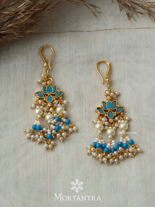 Blue Color Gold Plated Mishr Earrings - MR-E26B