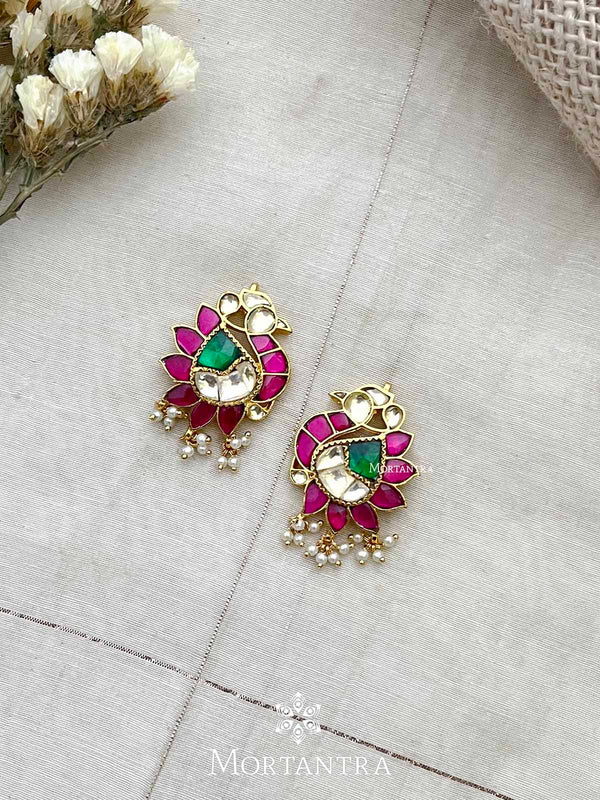 Pink Color Gold Plated Jadau Kundan Earrings - ME821P