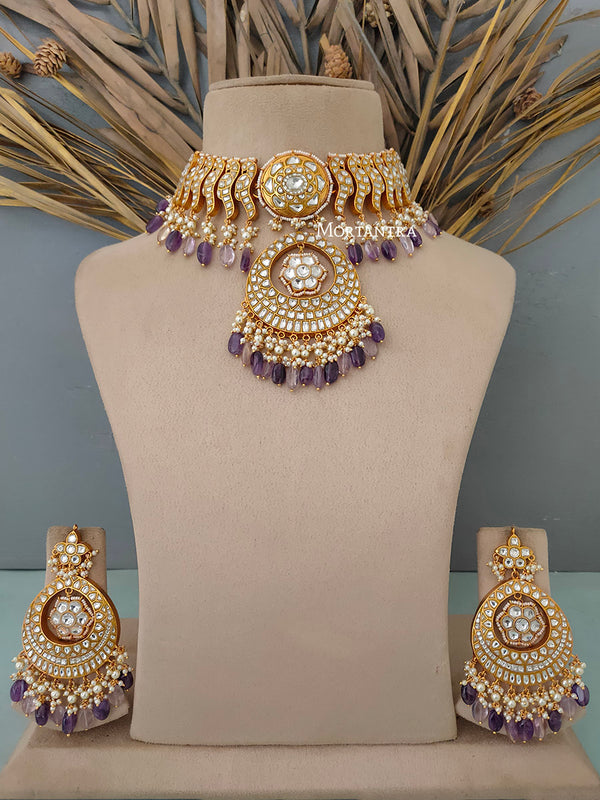 Purple Color Gold Plated Thappa Jadau Kundan Necklace Set - TJ-S17