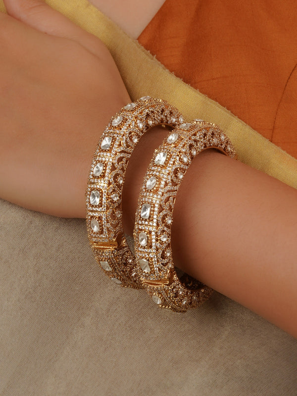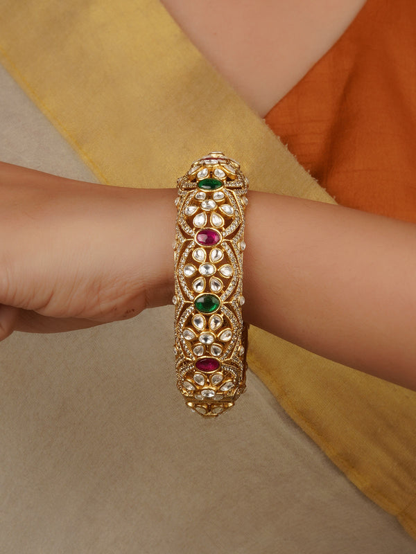 Green Color Gold Plated Jadau Kundan Bangles (One Pair) - MB69