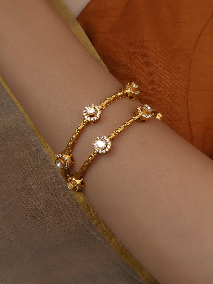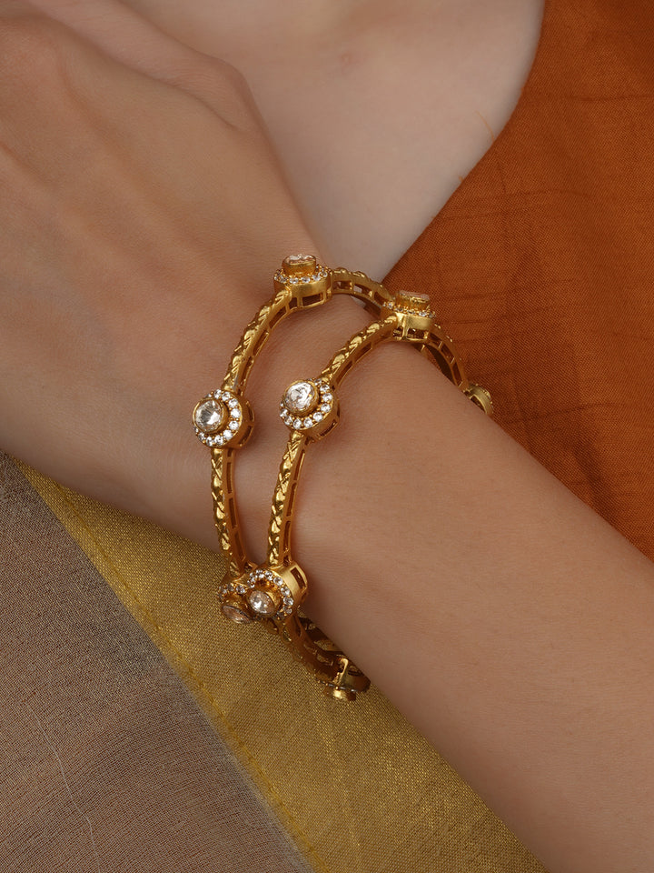 Gold Plated Faux Polki Bangles (One Pair) - PK-BAN27