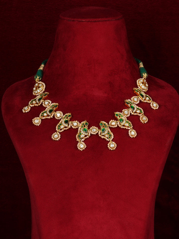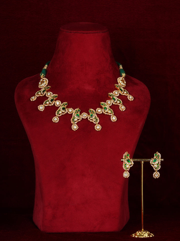 Basra Edit - Real Pearls Green Color Gold Plated Mishr Necklace Set - MR-S931WGR