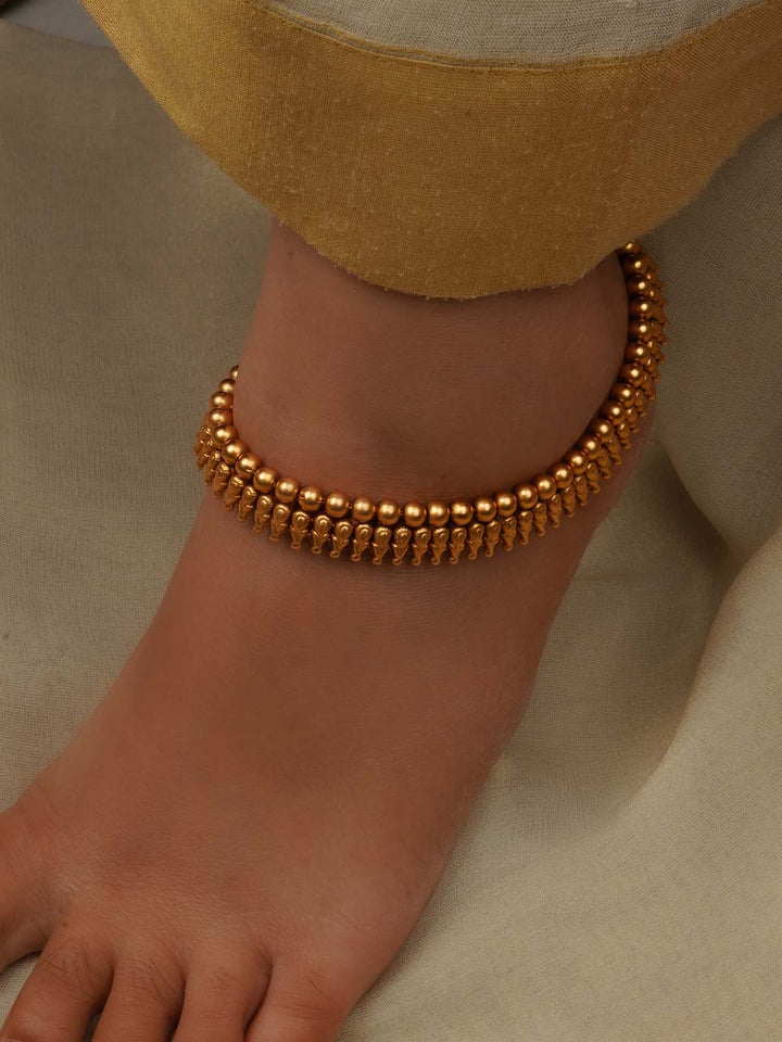 Gold Plated Temple Payal (One Pair) - TMPMPYL18