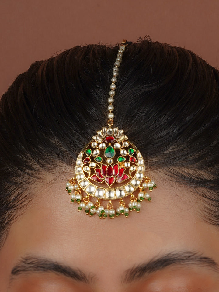 Multicolor Gold Plated Jadau Kundan Maangteeka - MT515M