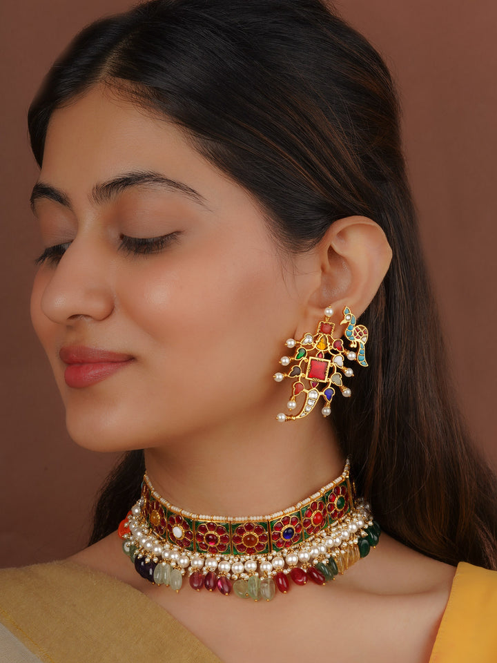 Navratna Gold Plated Jadau Kundan Necklace Set - MS2381N