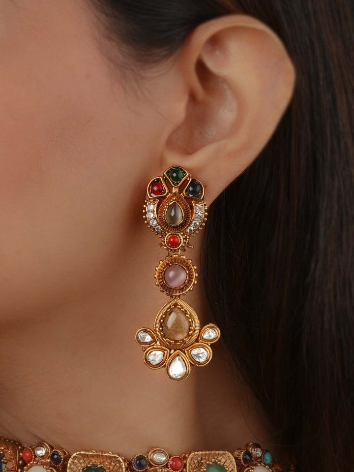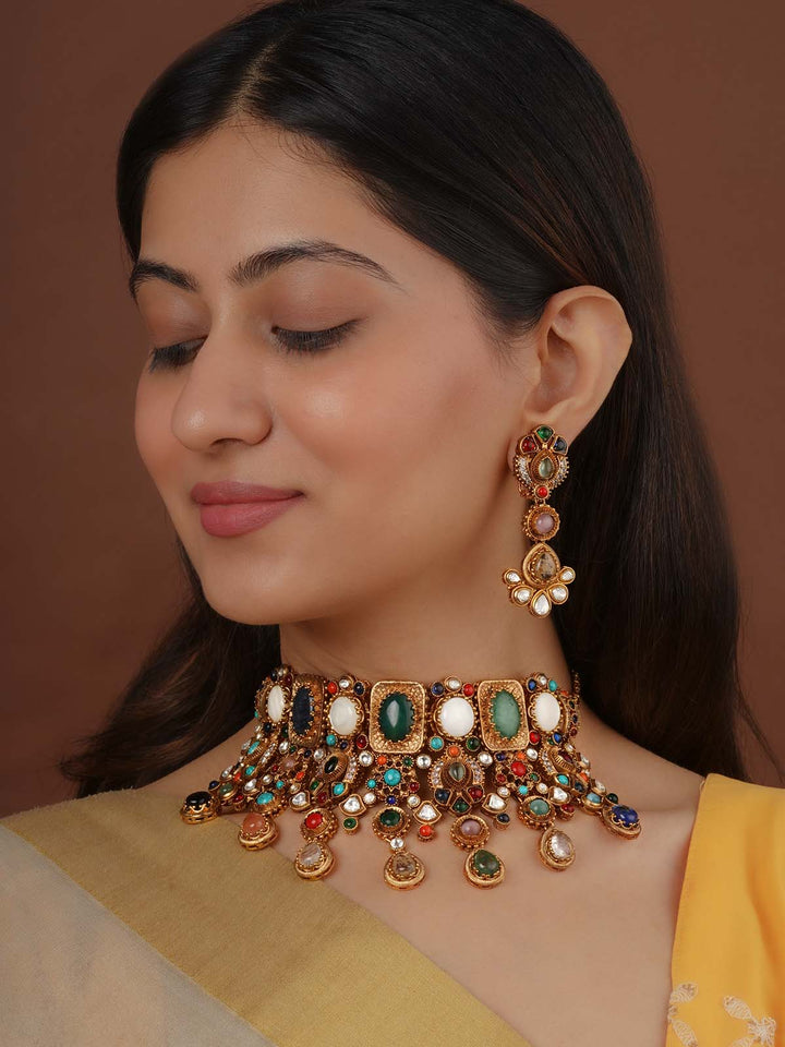 Navratna Gold Plated Navratna Necklace Set - NR-S11