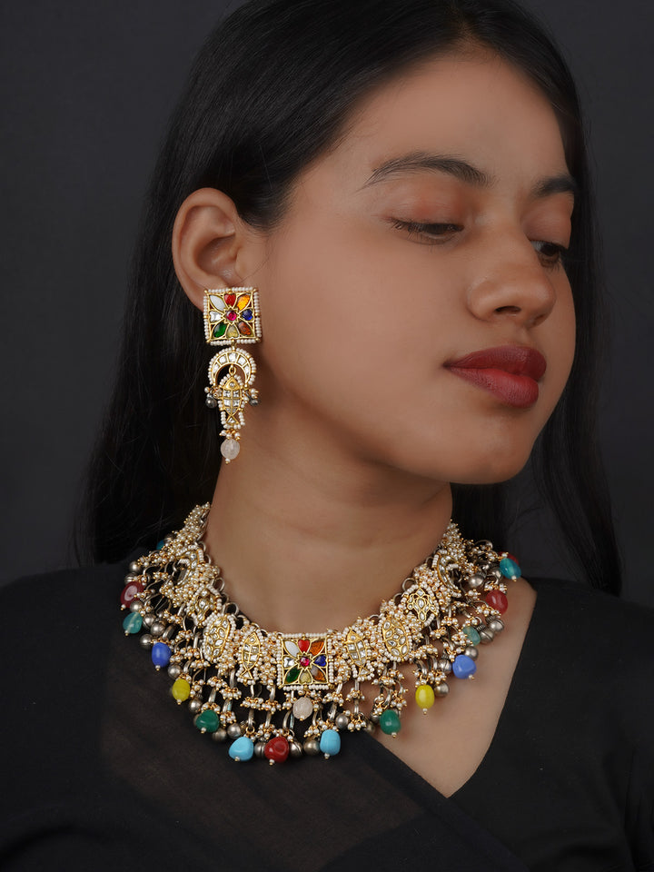 Navratna Tribal Necklace Set - EK-SFSET413N
