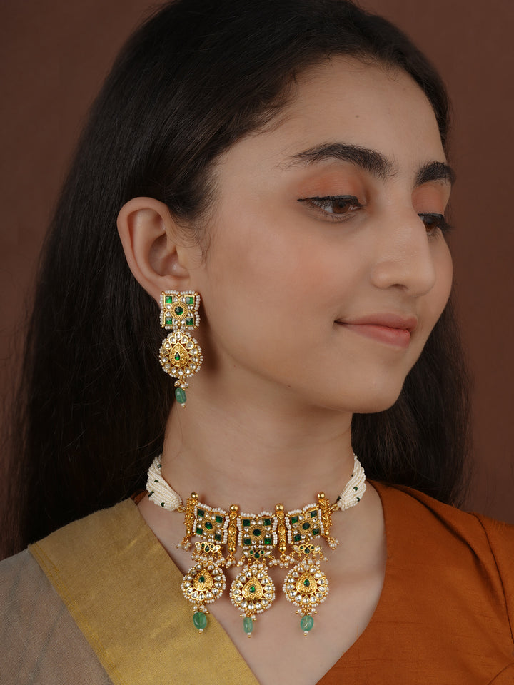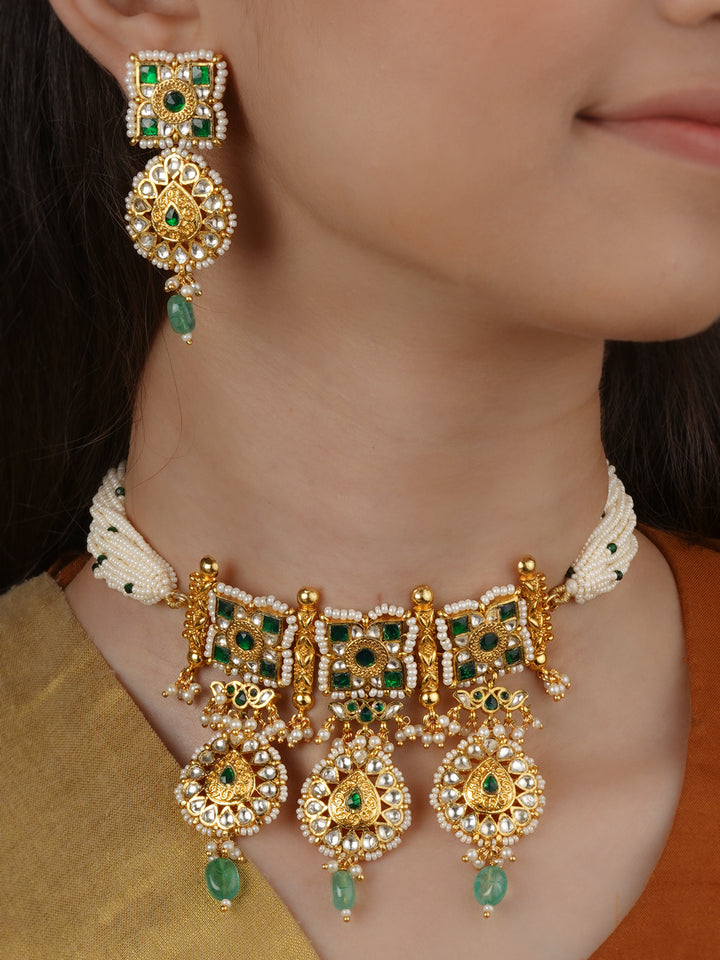 Mishr, by Mortantra is a collection of handcrafted Indian jewellery made with motifs of several kinds, having many different forms, features and emotions. Made with hand fully picked motifs, new and old, semi-precious beads and stones, our Mishra jewellery is an amalgamation of heritage and heirloom jewellery traditions and the rich craftsmanship of India. The jewellery is 22kt gold plated and finished in cultured pearls and takes pride in being skillfully crafted by the few of the finest jewellery artisans of our country.