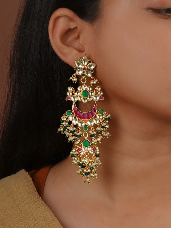Multicolor Gold Plated Jadau Kundan Earrings - ME649M
