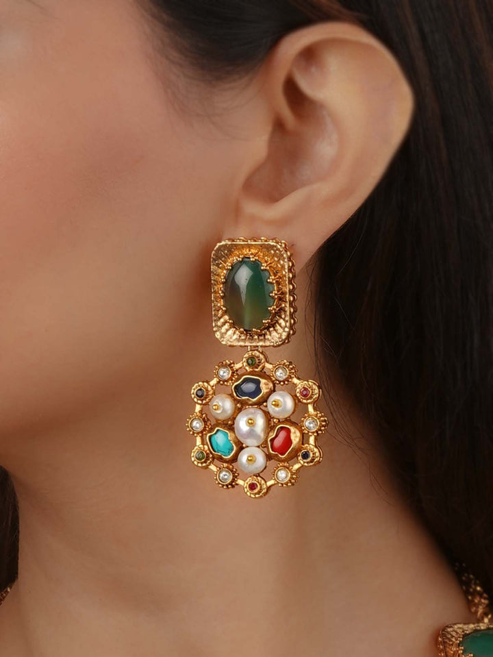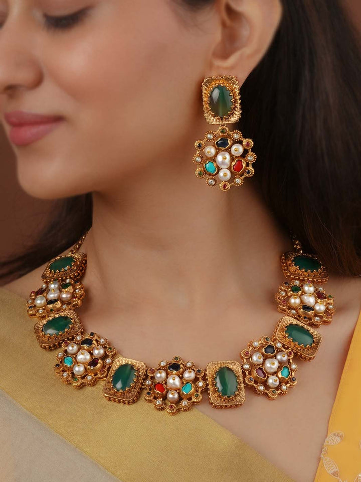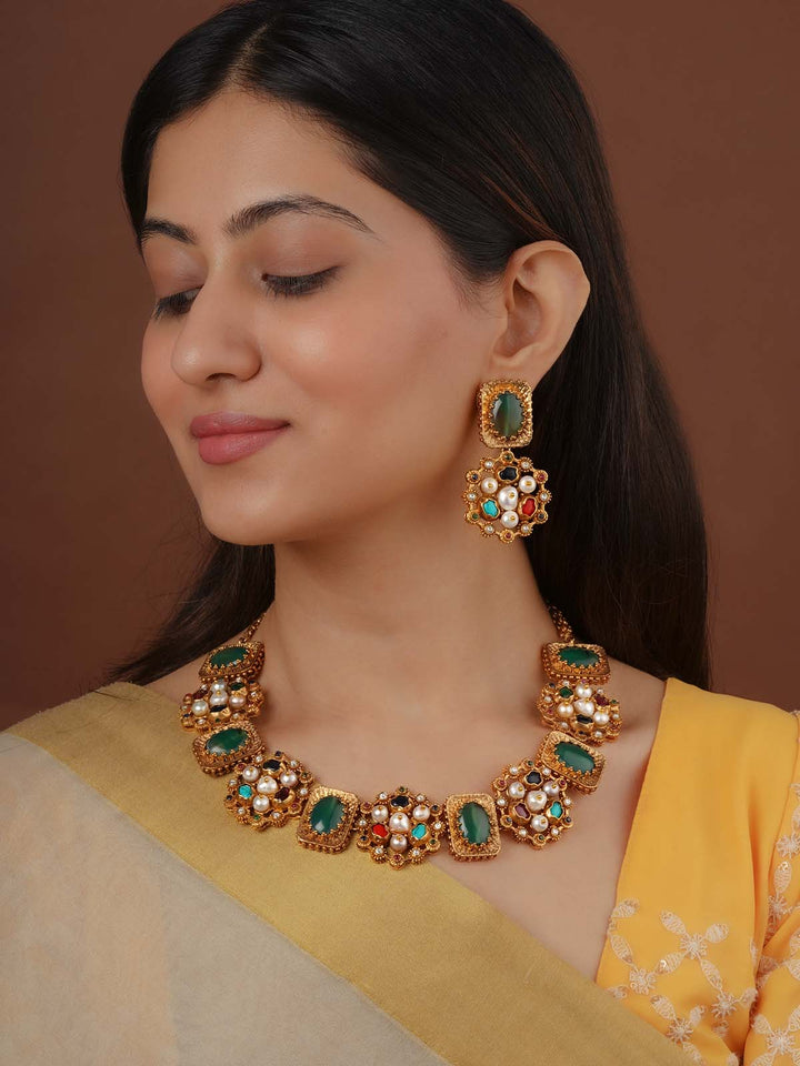 Navratna Gold Plated Navratna Necklace Set - NR-S8