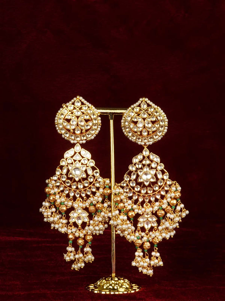 White Color Gold Plated Jadau Kundan Earrings - ME1364Y