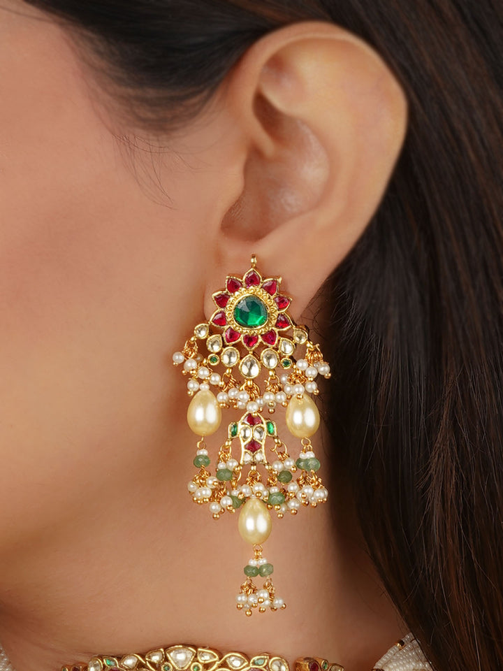 Gold Plated Jadau Kundan Necklace Set - MS2366