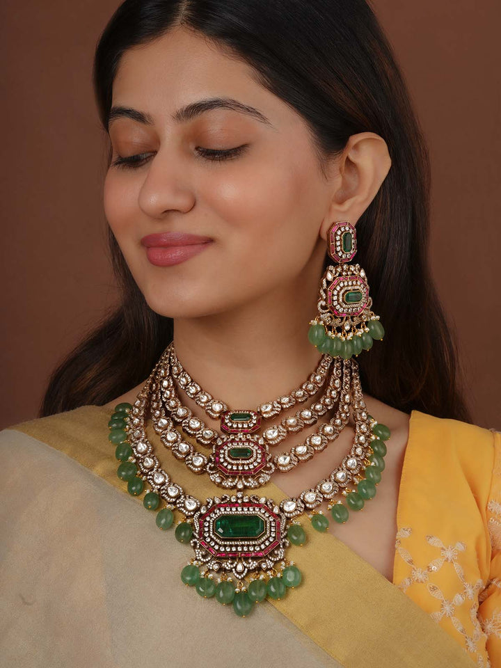 Our Faux Polki collection admires the heritage of Polki craftsmanship while embracing the versatility of contemporary style. Innovating heritage techniques we present to you faux Polki collection. Our designs are inspired by age old Polki regal jewellery and the setting we use beneath is the Kundan technique - setting the uncut faux Polki with silver foiling to give it a shine near to real polkis and lustre of regal, royal jewels as affordable luxury!
