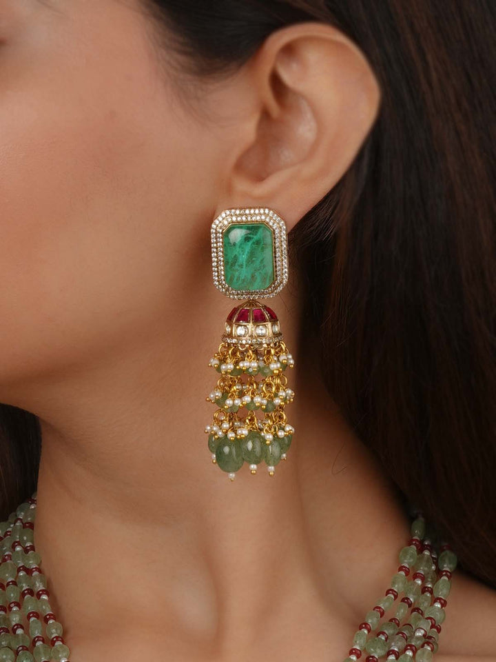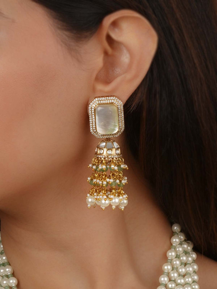 Our Faux Polki collection admires the heritage of Polki craftsmanship while embracing the versatility of contemporary style. Innovating heritage techniques we present to you faux Polki collection. Our designs are inspired by age old Polki regal jewellery and the setting we use beneath is the Kundan technique - setting the uncut faux Polki with silver foiling to give it a shine near to real polkis and lustre of regal, royal jewels as affordable luxury!