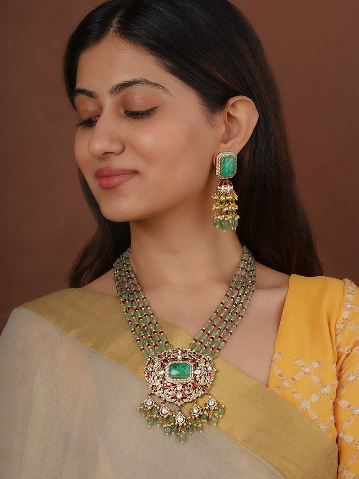 Gold Plated Faux Polki Necklace Set - PK-S368