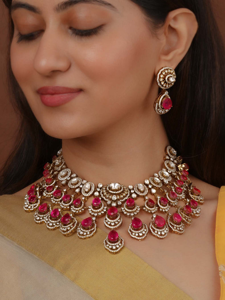 Pink Color Faux Polki Bridal Necklace Set - PK-S320P