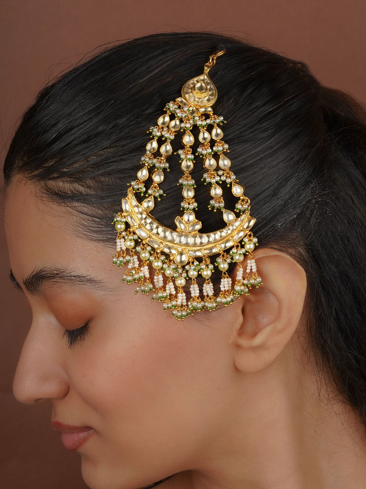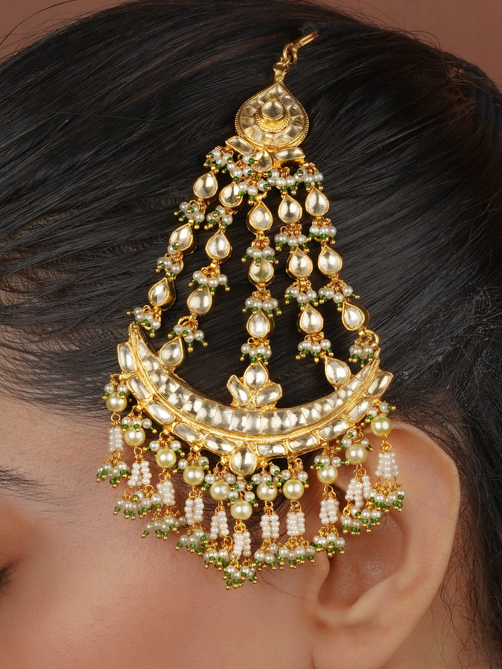 Green Color Gold Plated Jadau Kundan Passa - MP157