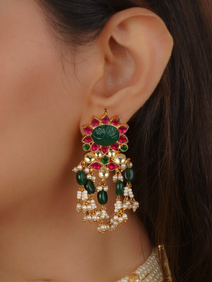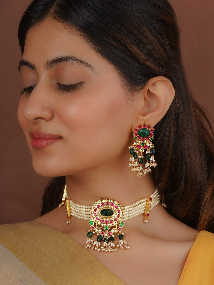 Multicolor Gold Plated Jadau Kundan Necklace Set - MS1961
