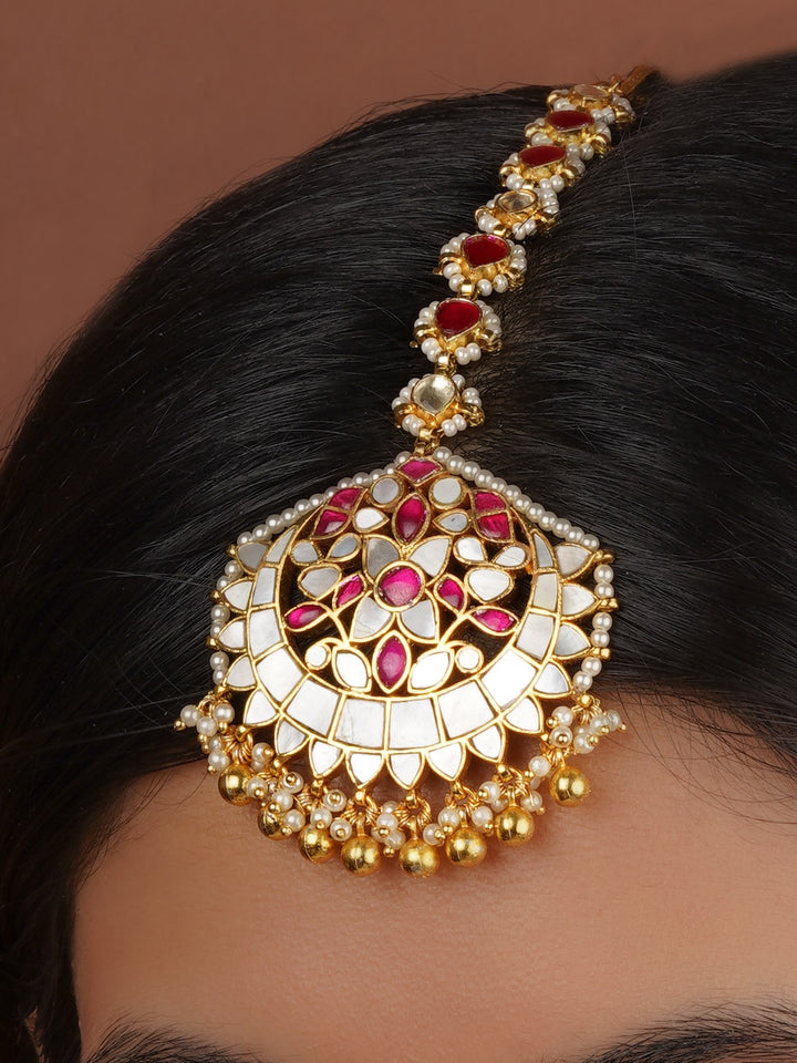 Pink Color Gold Plated Mishr Maangteeka - MR-T87M