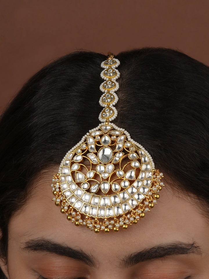 White Color Gold Plated Jadau Kundan Maangteeka - MT553W