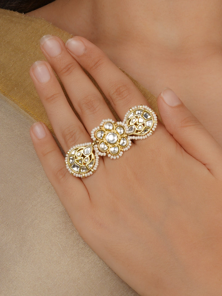 White Color Gold Plated Mishr Ring - MR-RNG73