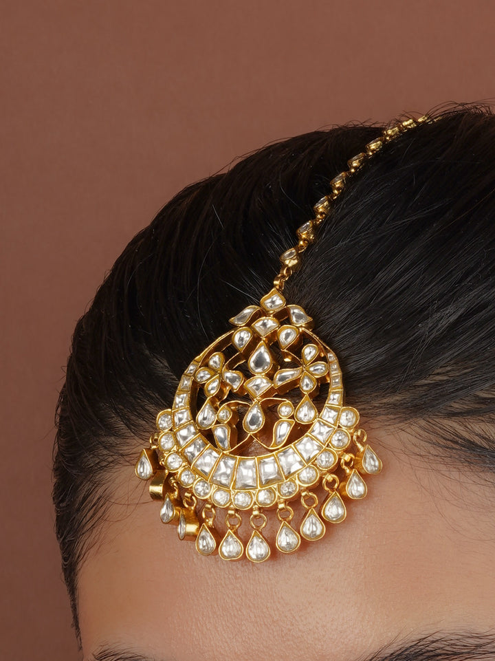 White Color Gold Plated Thappa Jadau Kundan Maangteeka - TJ-T26