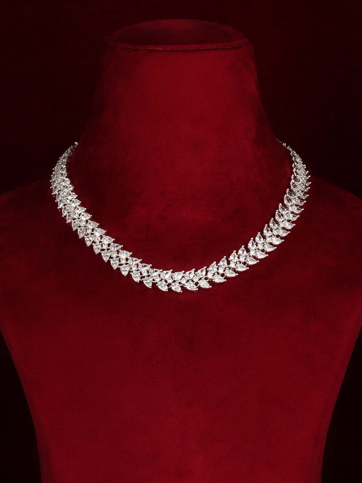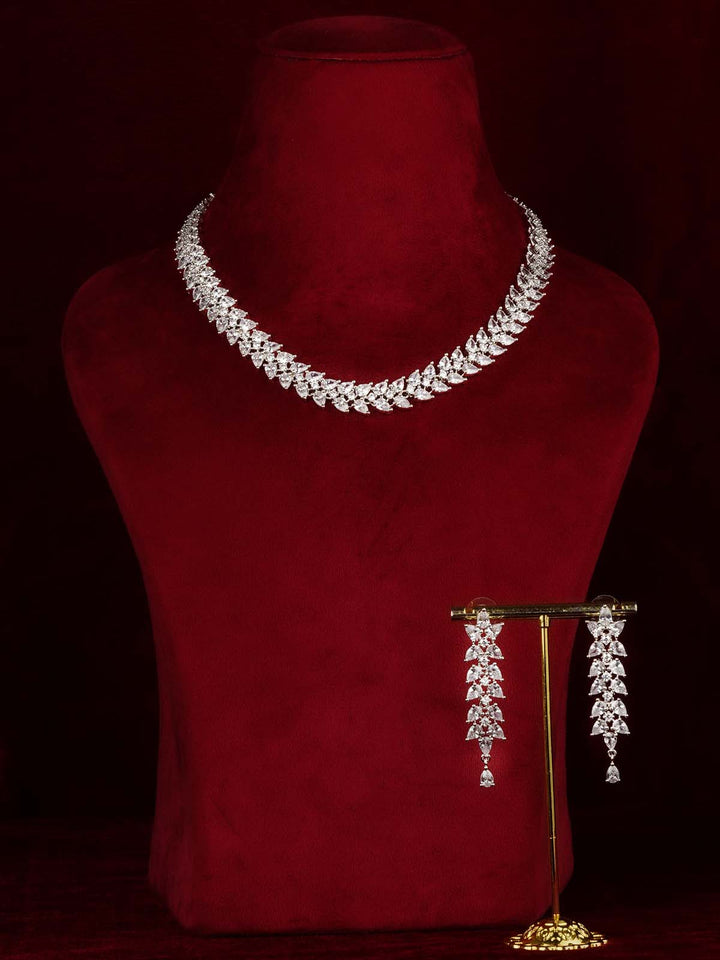 White Color Silver Plated Faux Diamond Necklace Set - CZSET412