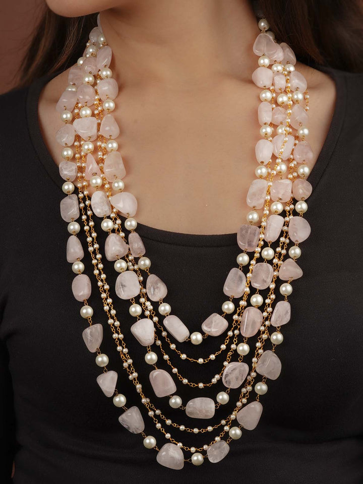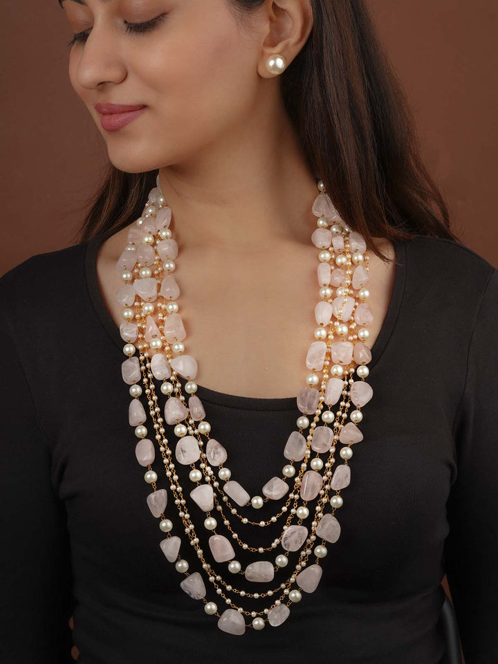 Baby Pink Color Gold Plated Costume Necklace Set - CSTS9