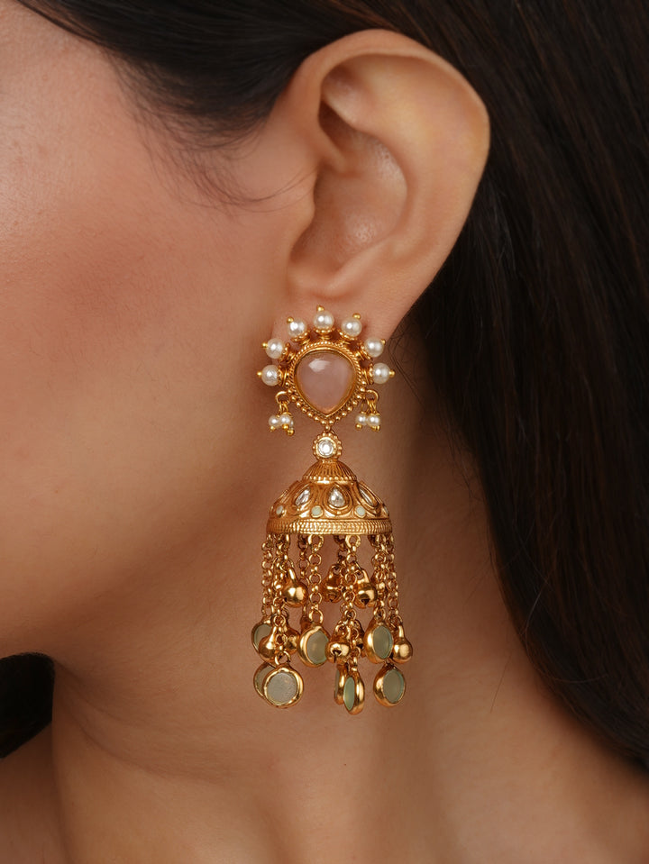 Baby Pink Color Gold Plated Faux Polki Earrings - PK-E135LP