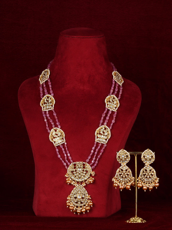 Baby Pink Color Gold Plated Mishr Necklace Set - MR-S881