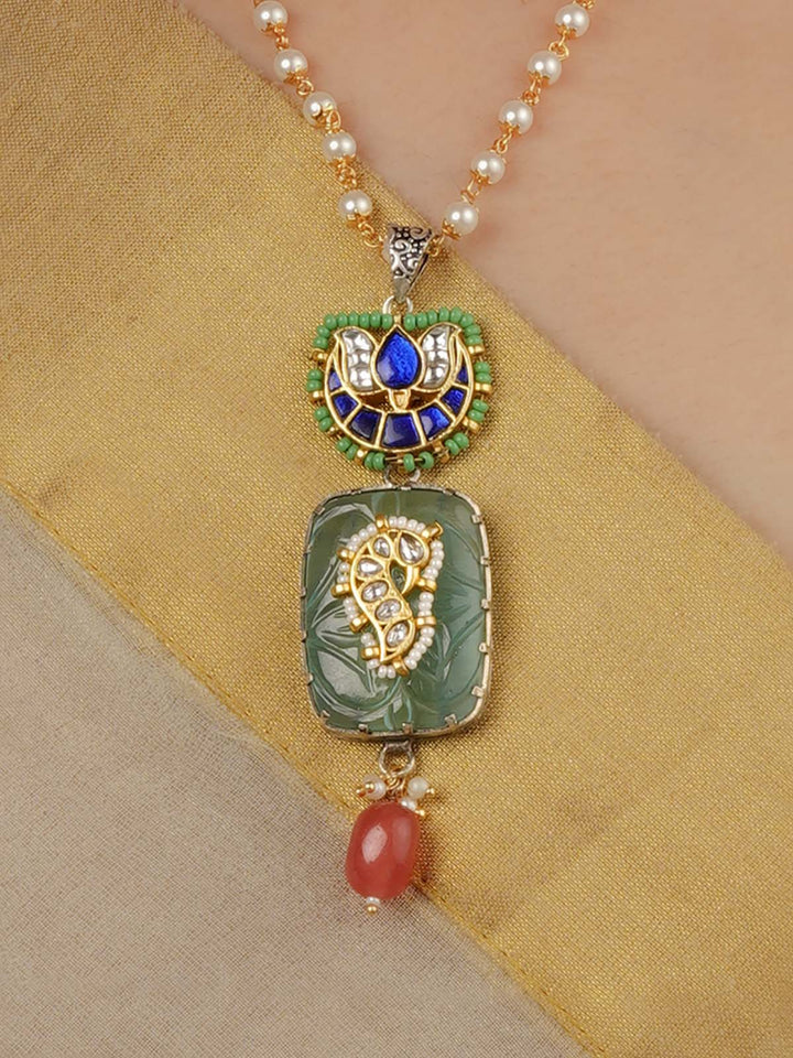 Mishr, by Mortantra is a collection of handcrafted Indian jewellery made with motifs of several kinds, having many different forms, features and emotions. Made with hand fully picked motifs, new and old, semi-precious beads and stones, our Mishra jewellery is an amalgamation of heritage and heirloom jewellery traditions and the rich craftsmanship of India. The jewellery is 22kt gold plated and finished in cultured pearls and takes pride in being skillfully crafted by the few of the finest jewellery artisans of our country.