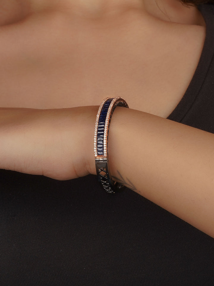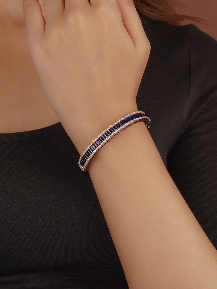 Blue Color Silver Plated Faux Diamond Bracelet (1 Piece) - CZBRAC153BL