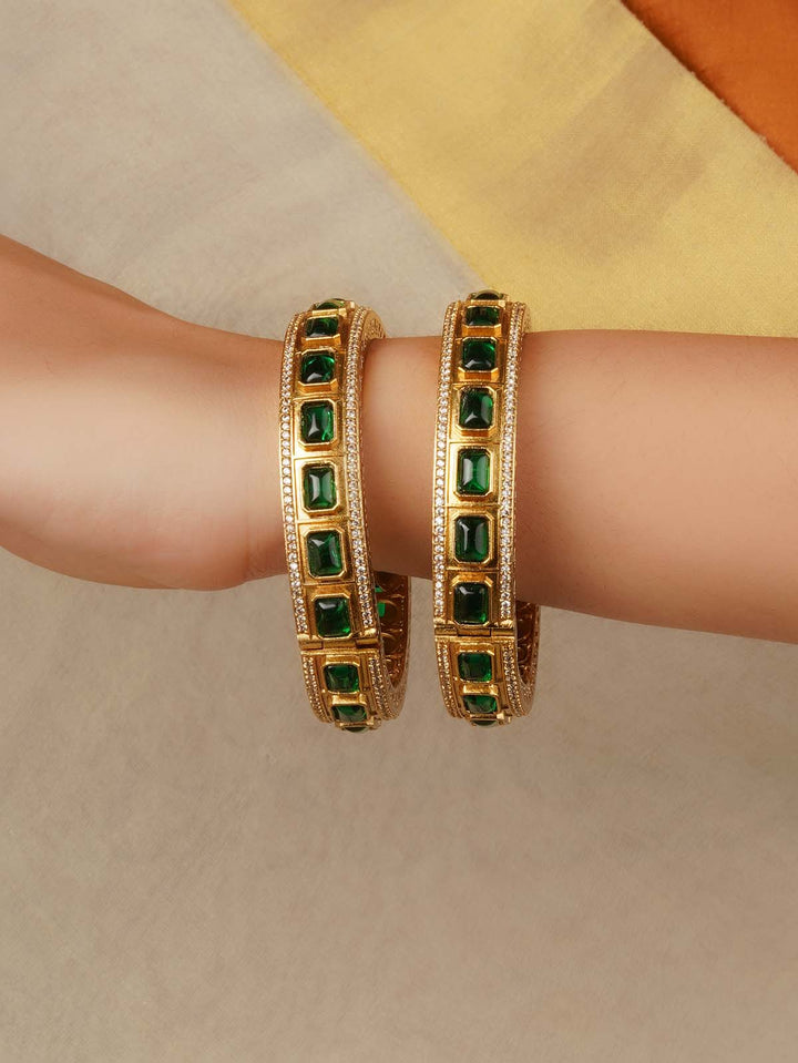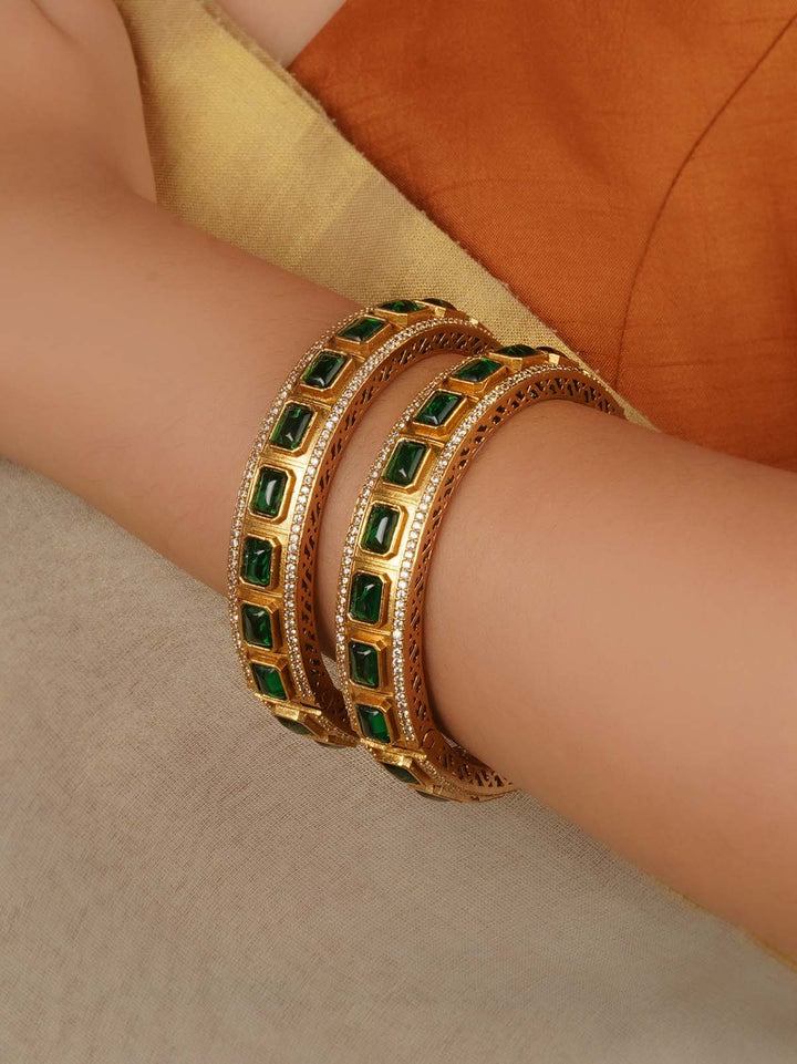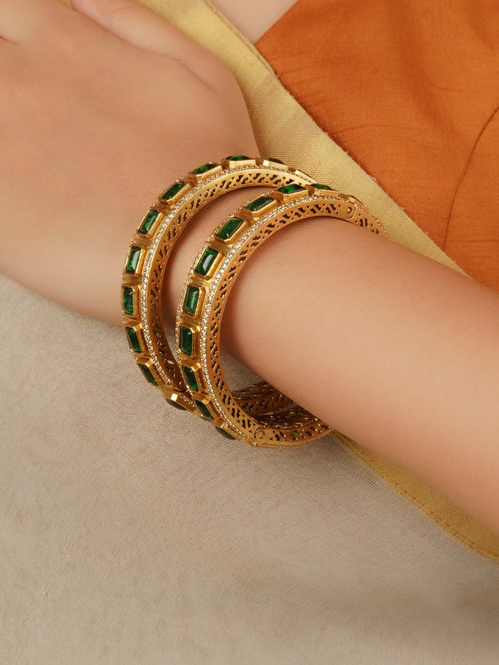 Gold Plated Faux Polki Bangles (One Pair) - PK-BAN19