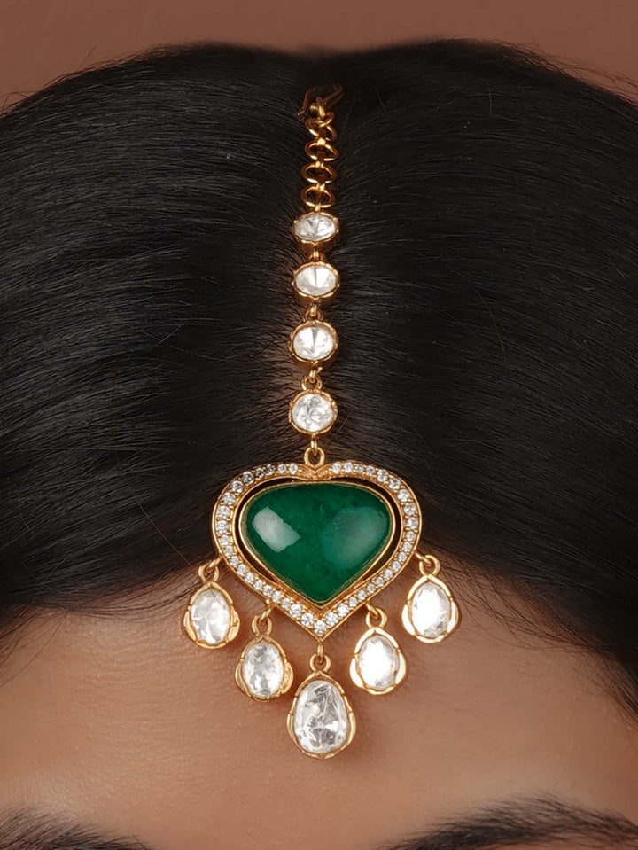 Gold Plated Faux Polki Maangteeka - PK-T35