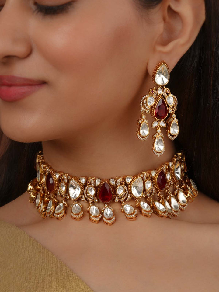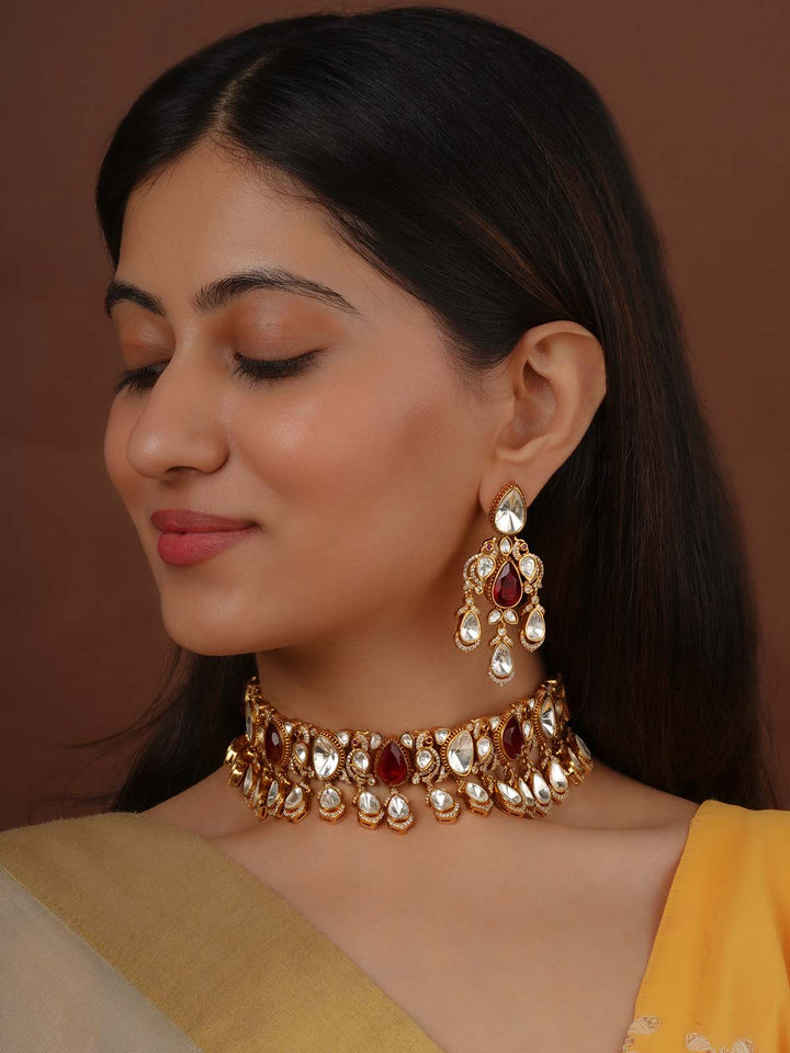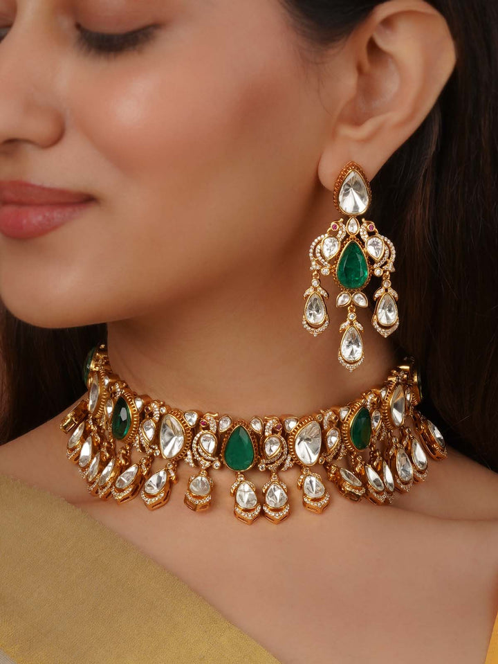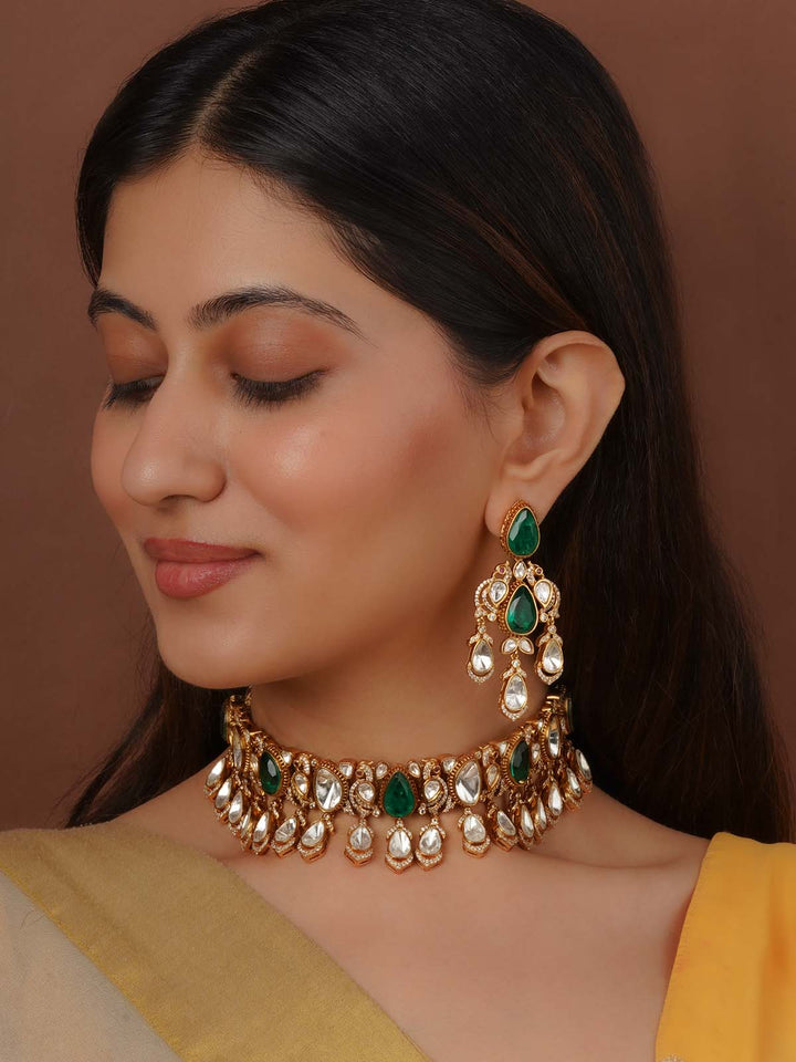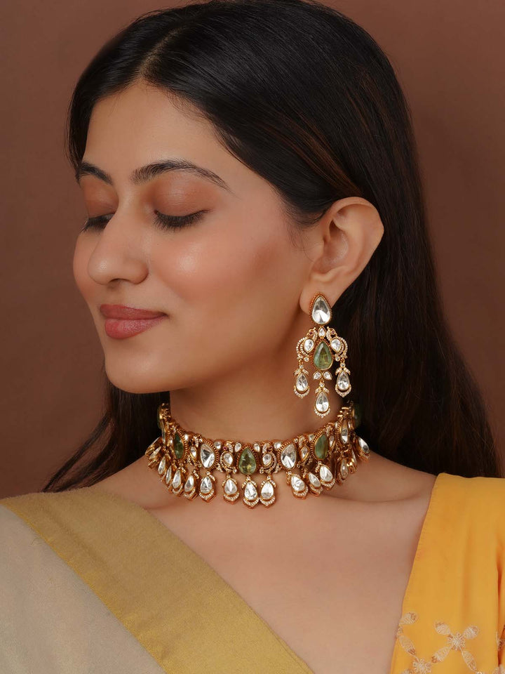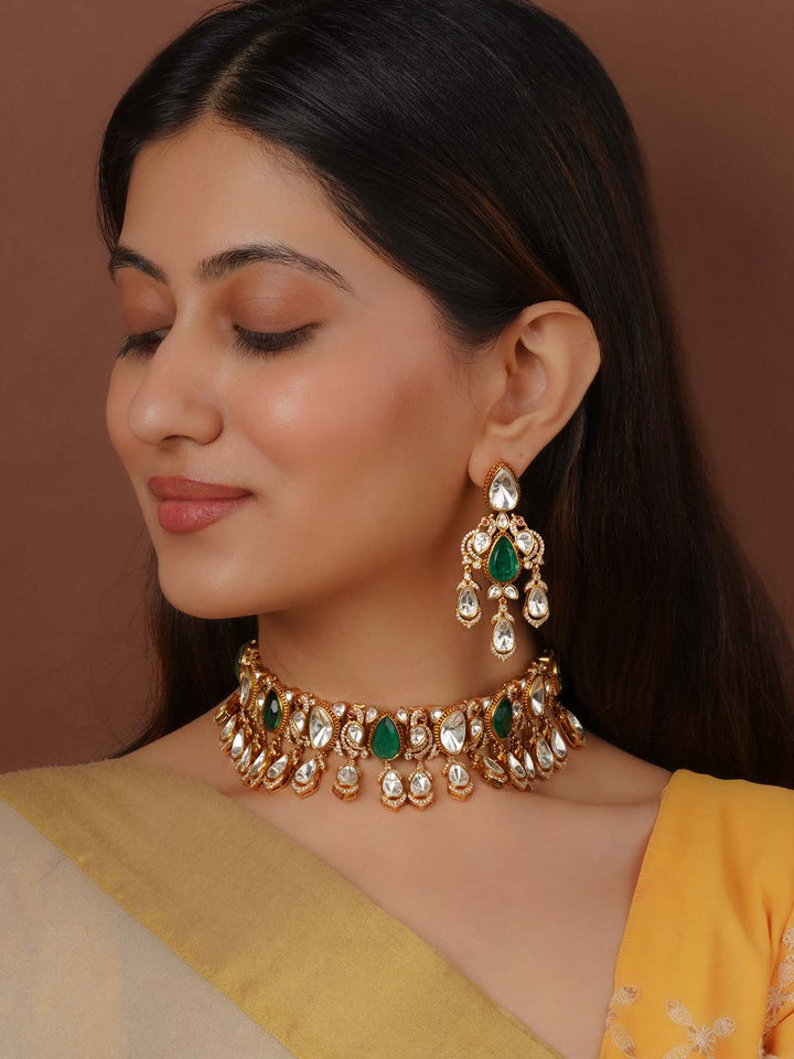 Gold Plated Faux Polki Necklace Set - PK-S317