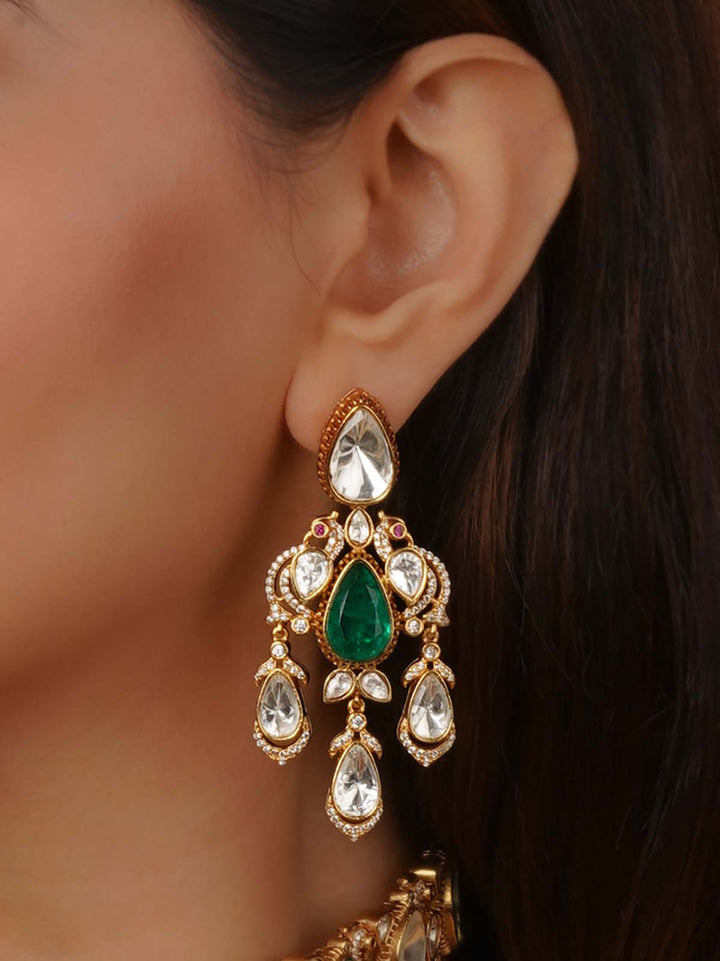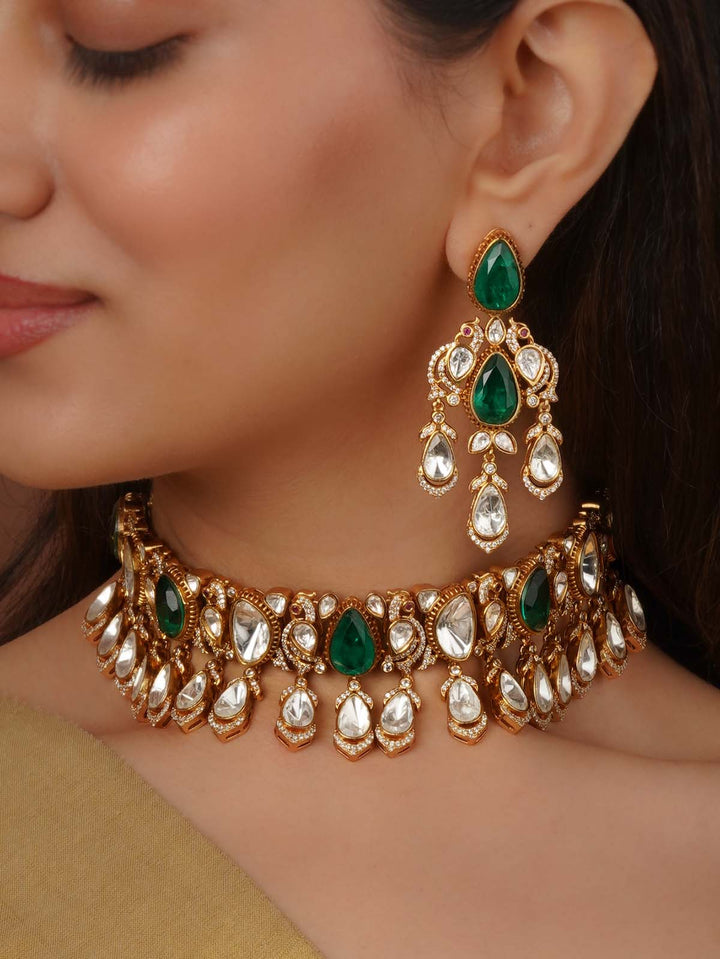 Our Faux Polki collection admires the heritage of Polki craftsmanship while embracing the versatility of contemporary style. Innovating heritage techniques we present to you faux Polki collection. Our designs are inspired by age old Polki regal jewellery and the setting we use beneath is the Kundan technique - setting the uncut faux Polki with silver foiling to give it a shine near to real polkis and lustre of regal, royal jewels as affordable luxury!
