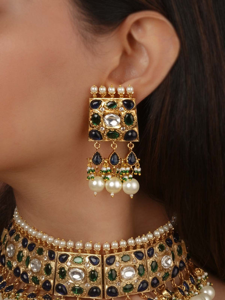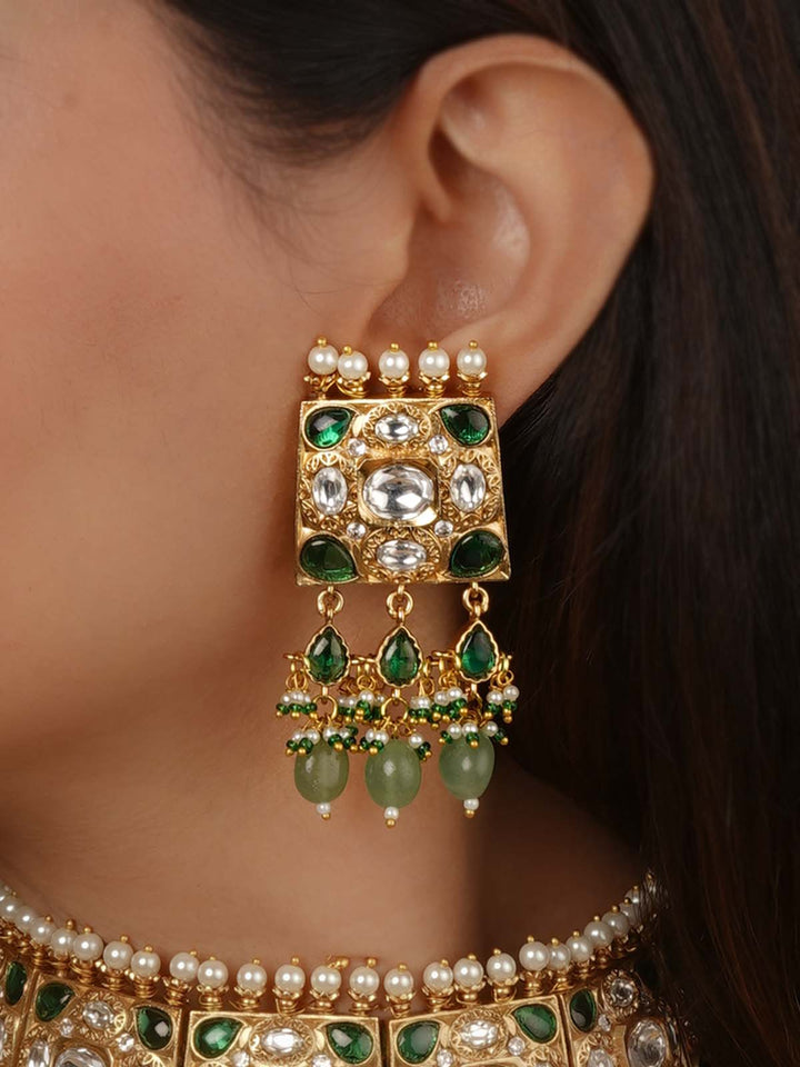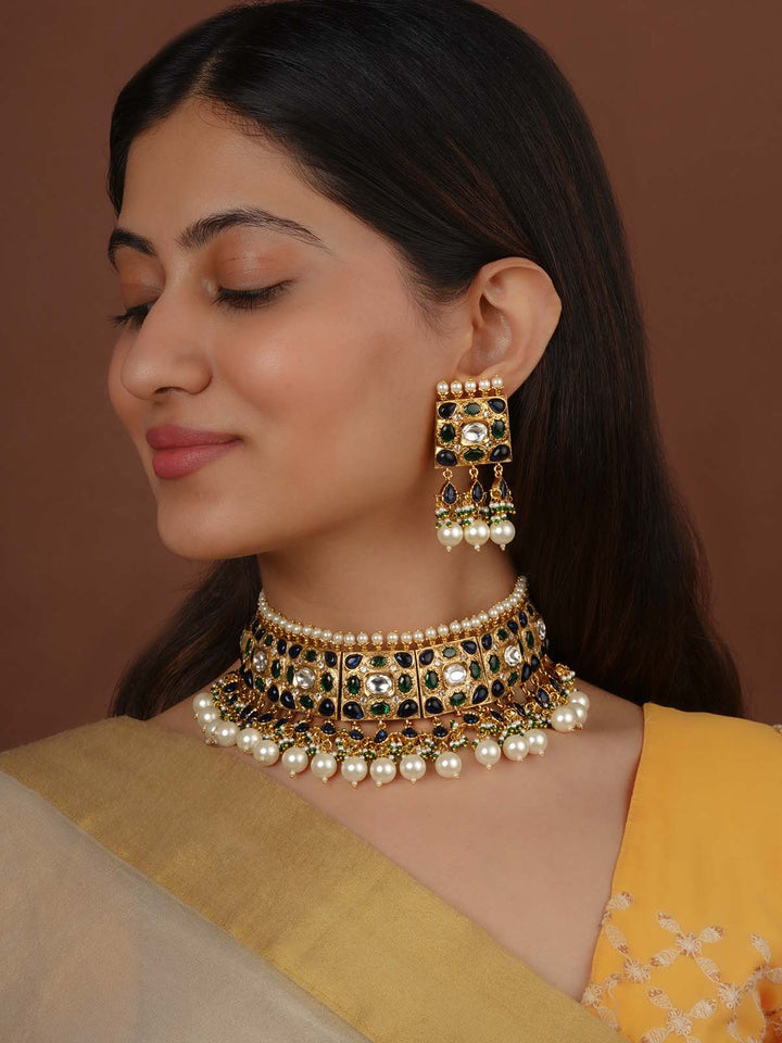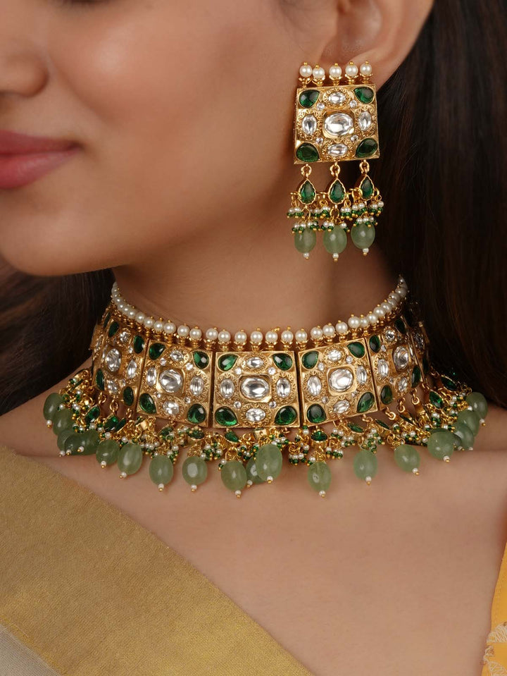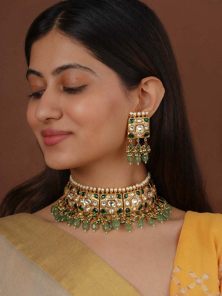 Gold Plated Faux Polki Necklace Set - PK-S367