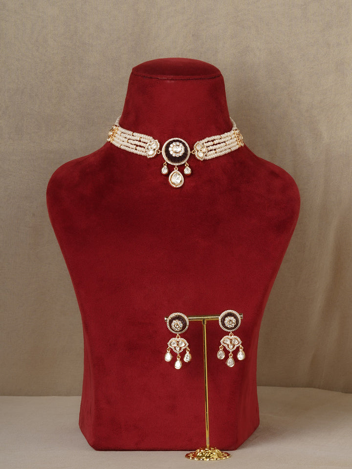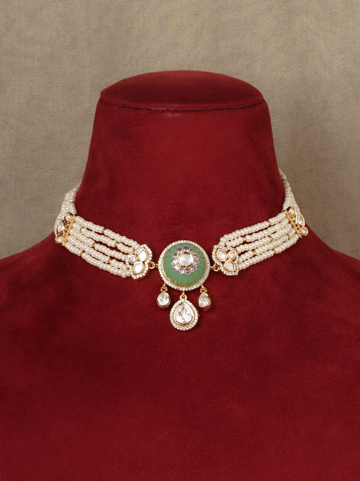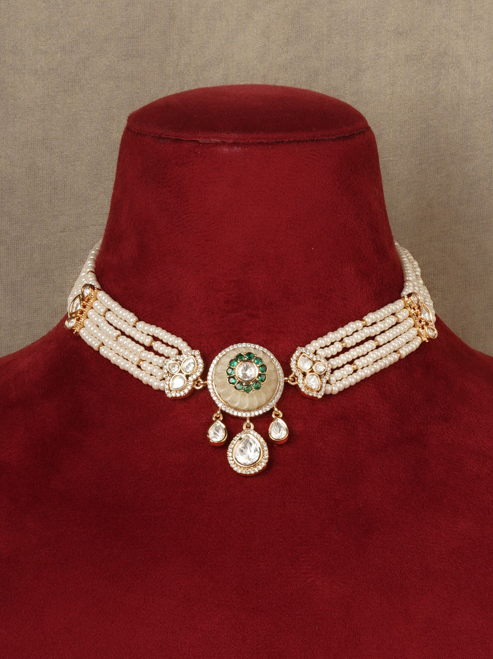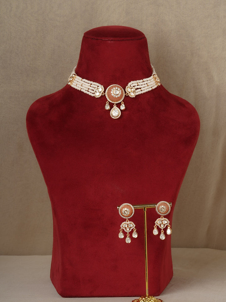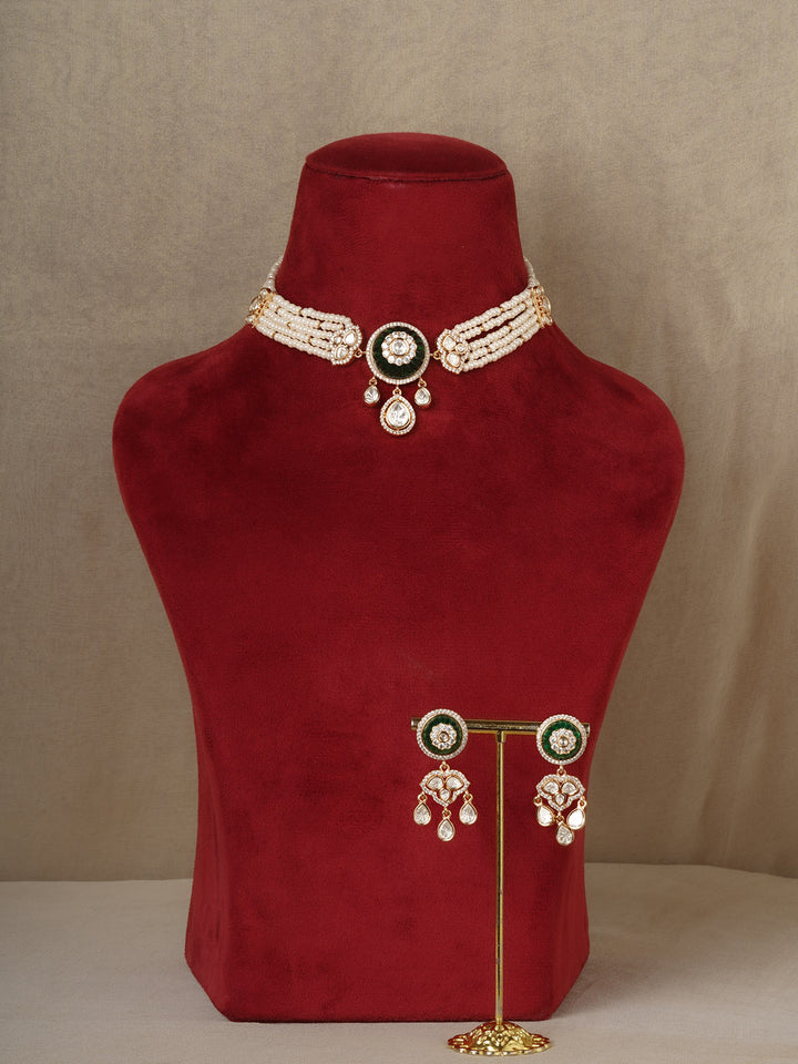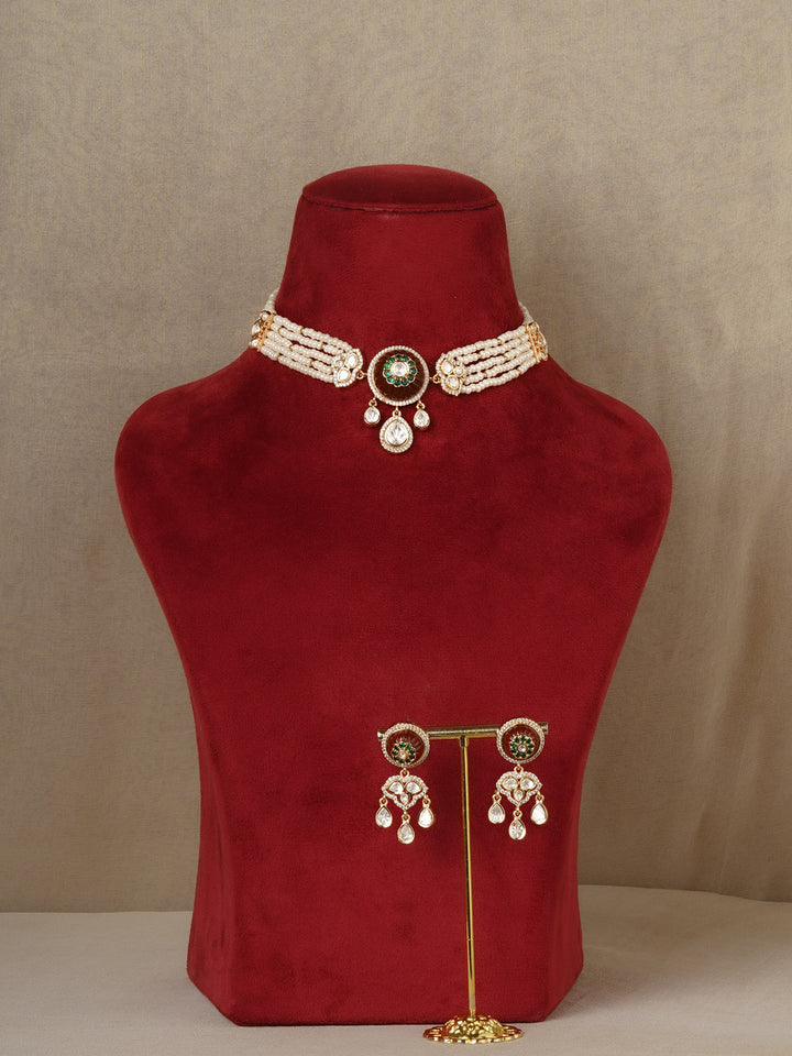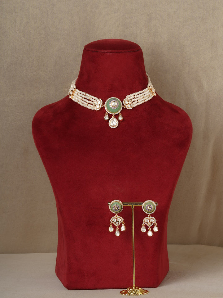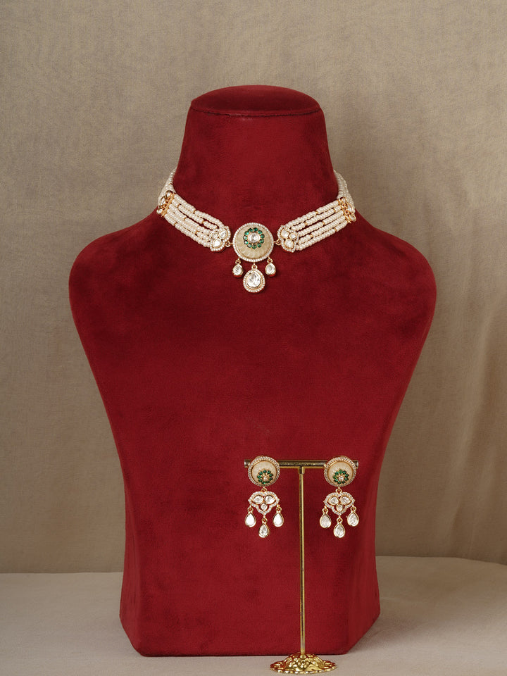 Gold Plated Faux Polki Necklace Set - PK-S376