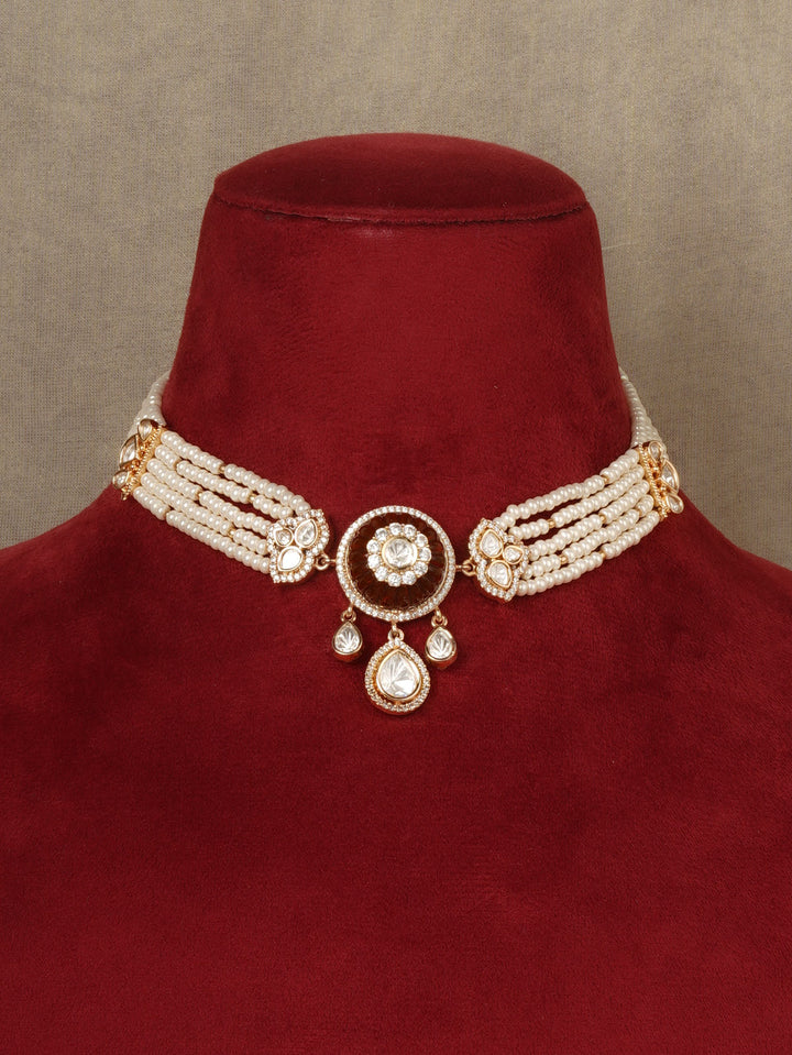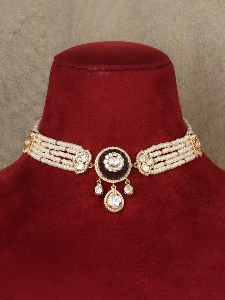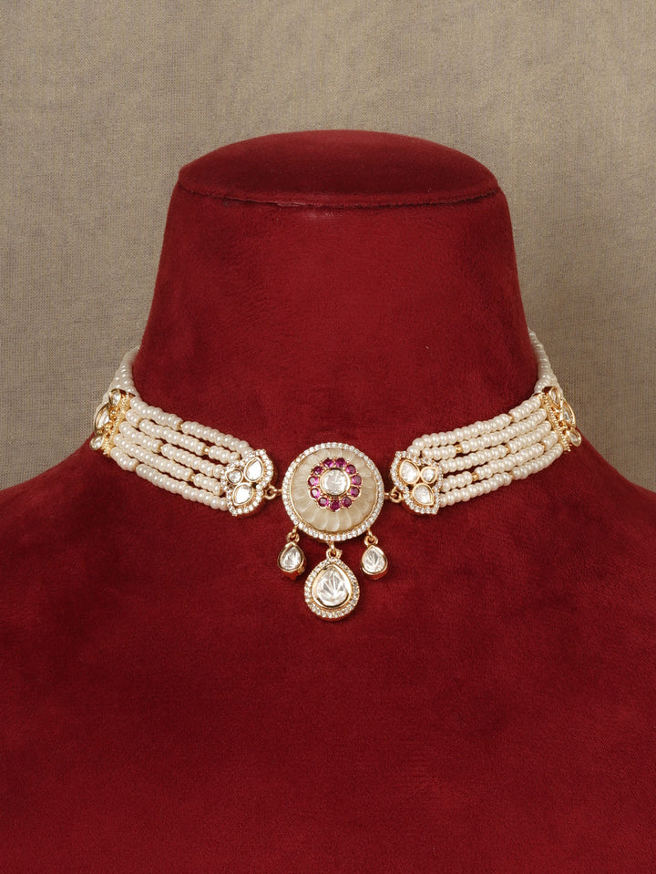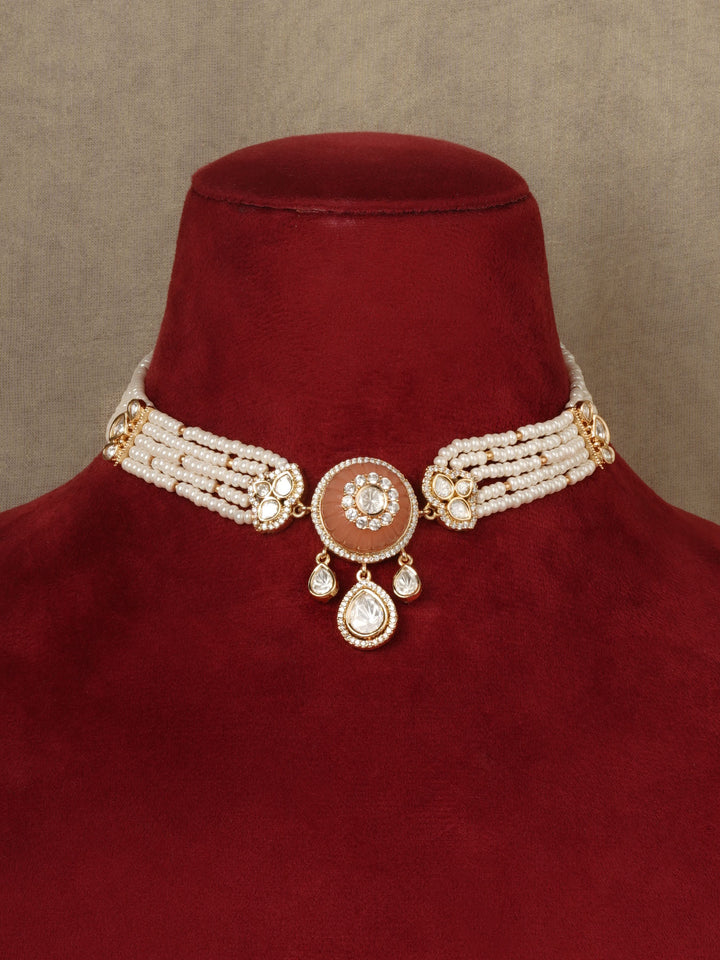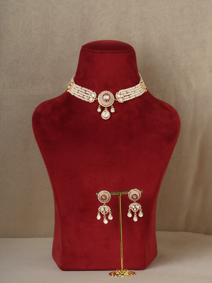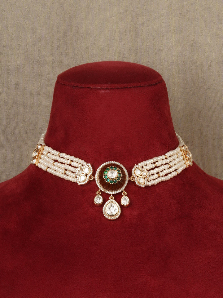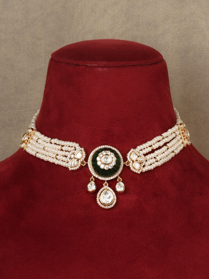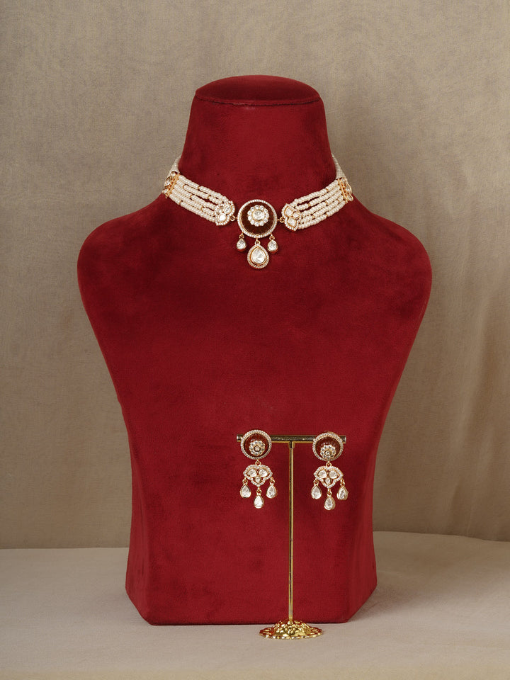 Gold Plated Faux Polki Necklace Set - PK-S376