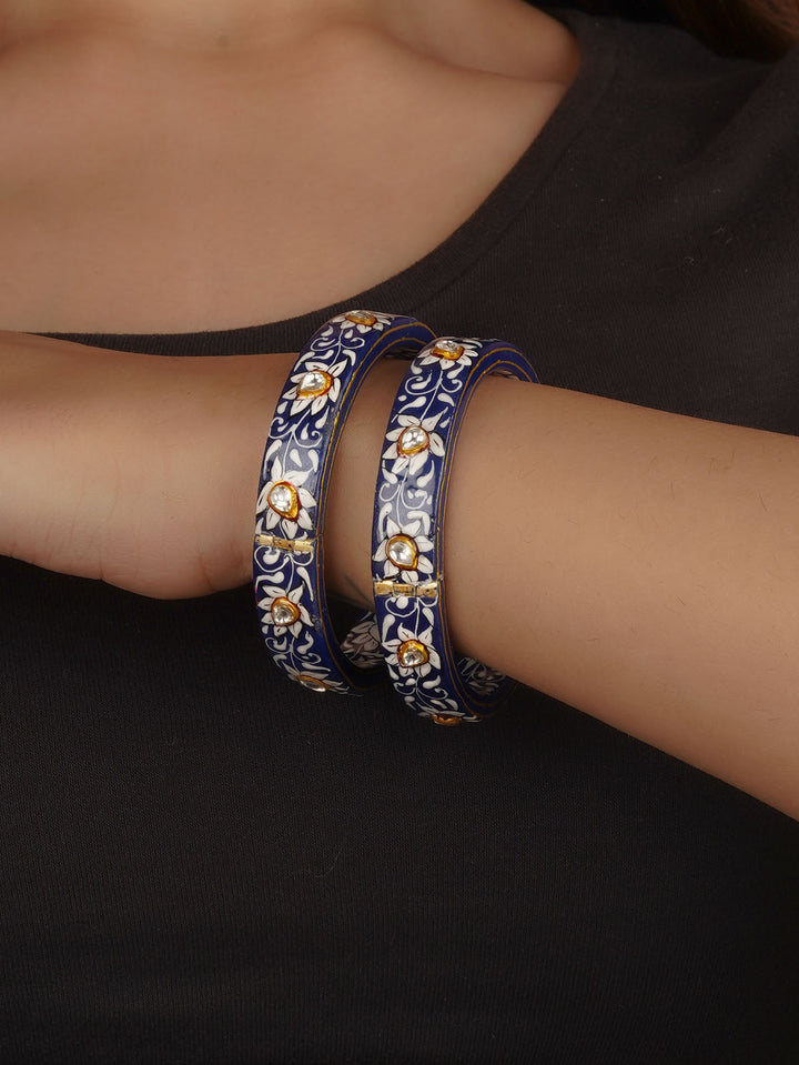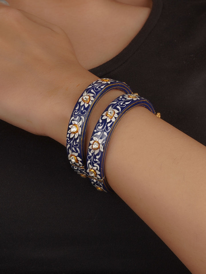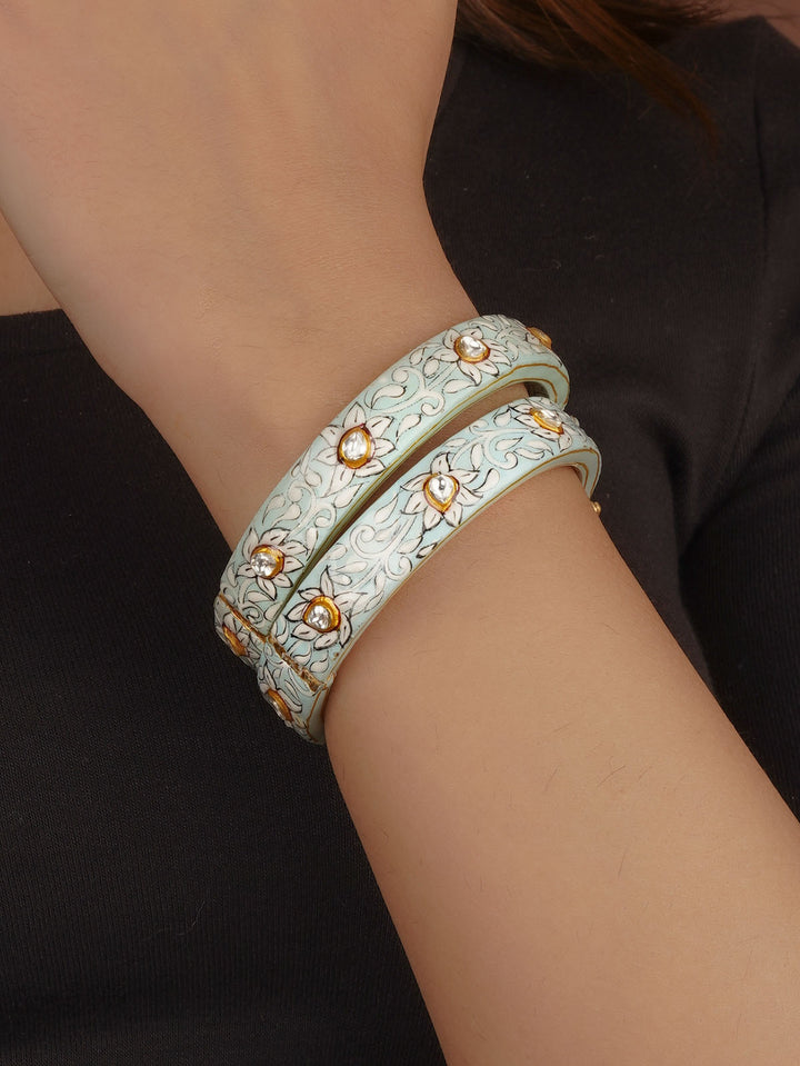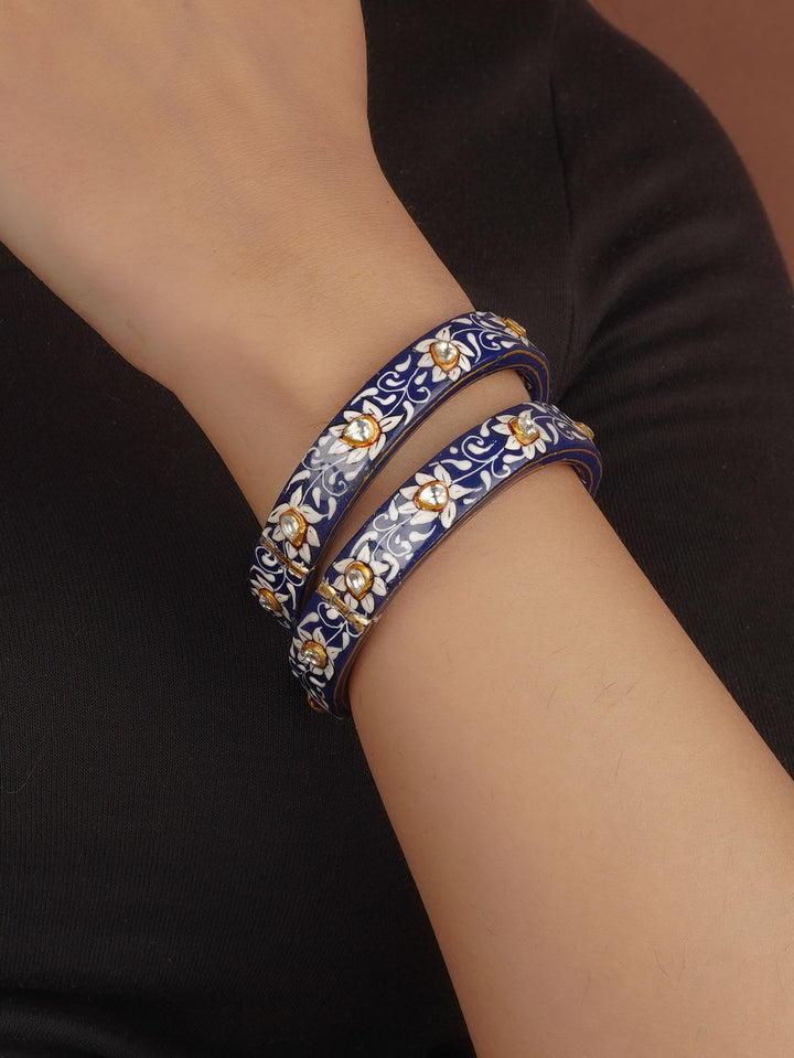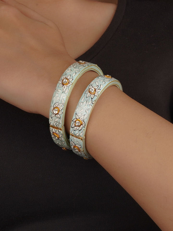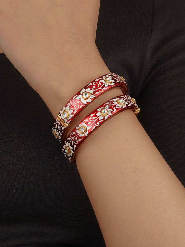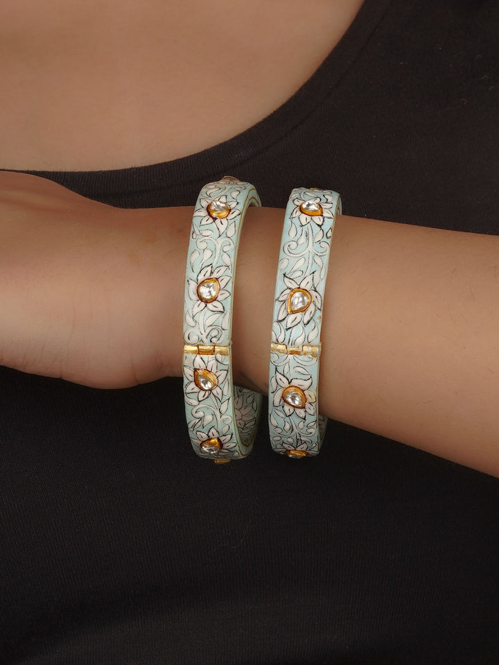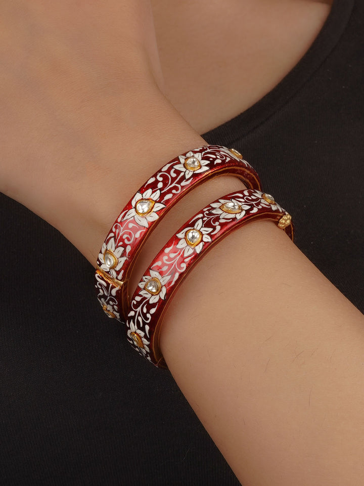 Gold Plated Jadau Kundan Bangles (One Pair) - MB224