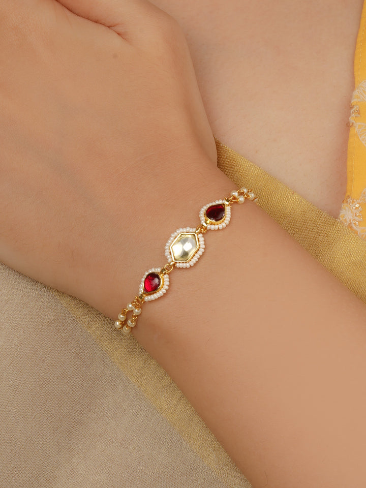 Gold Plated Jadau Kundan Bracelet (1 Piece) - MBRAC28