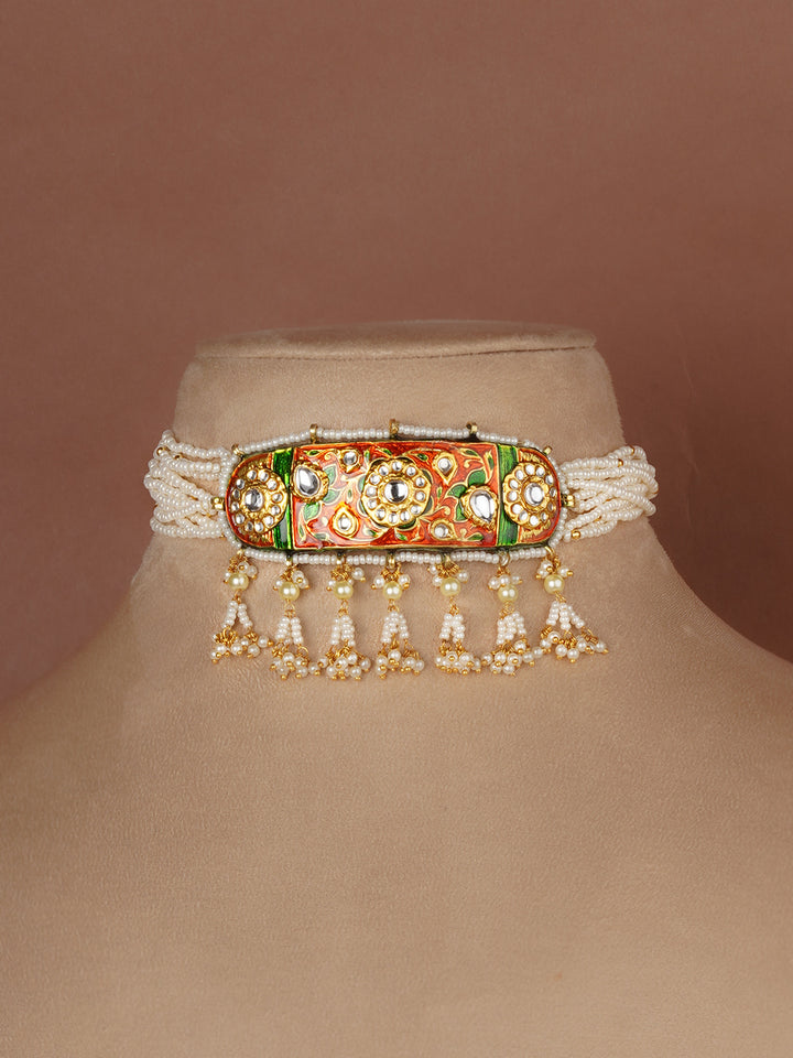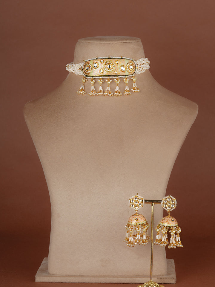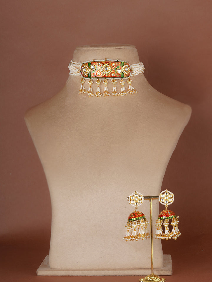 Gold Plated Jadau Kundan Necklace Set - MBD71