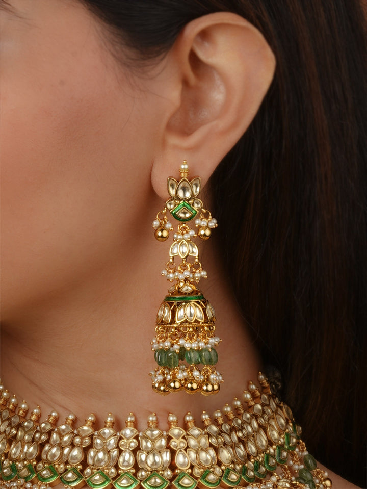 Gold Plated Jadau Kundan Necklace Set - MS2581