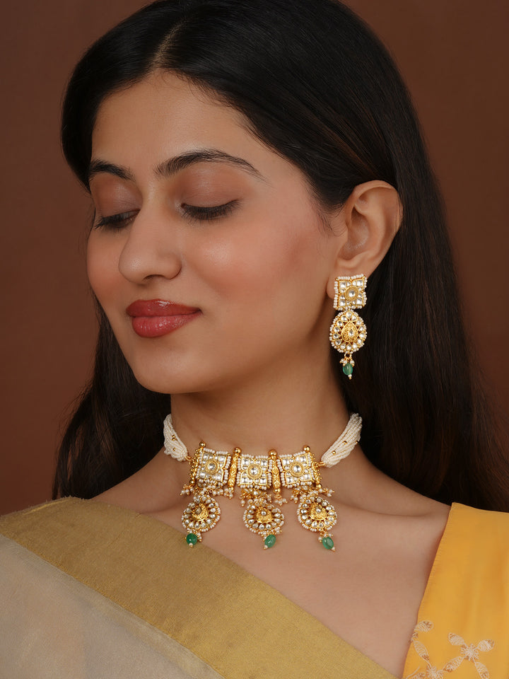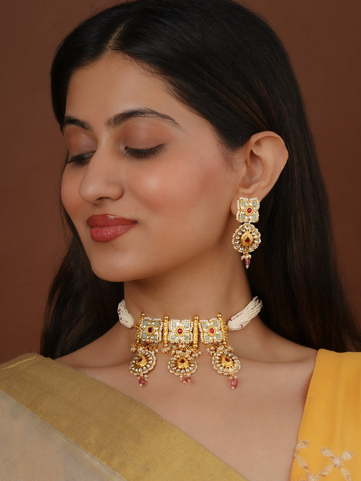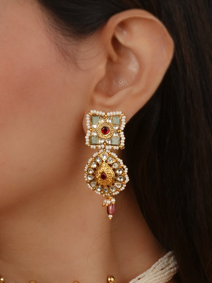 Mishr, by Mortantra is a collection of handcrafted Indian jewellery made with motifs of several kinds, having many different forms, features and emotions. Made with hand fully picked motifs, new and old, semi-precious beads and stones, our Mishra jewellery is an amalgamation of heritage and heirloom jewellery traditions and the rich craftsmanship of India. The jewellery is 22kt gold plated and finished in cultured pearls and takes pride in being skillfully crafted by the few of the finest jewellery artisans of our country.