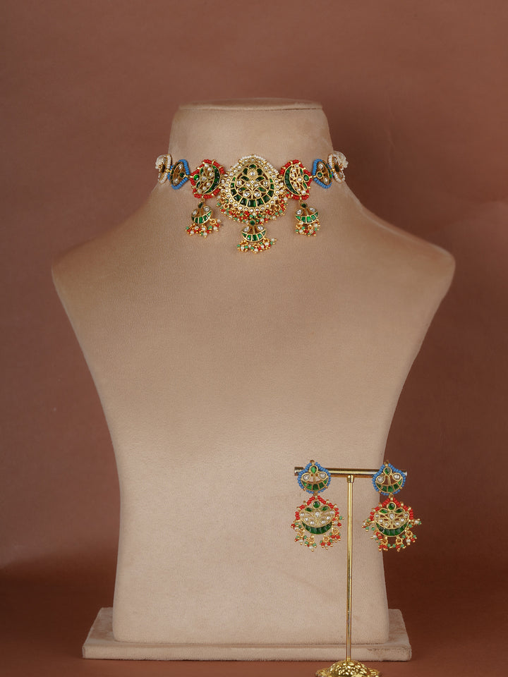 Mishr, by Mortantra is a collection of handcrafted Indian jewellery made with motifs of several kinds, having many different forms, features and emotions. Made with hand fully picked motifs, new and old, semi-precious beads and stones, our Mishra jewellery is an amalgamation of heritage and heirloom jewellery traditions and the rich craftsmanship of India. The jewellery is 22kt gold plated and finished in cultured pearls and takes pride in being skillfully crafted by the few of the finest jewellery artisans of our country.