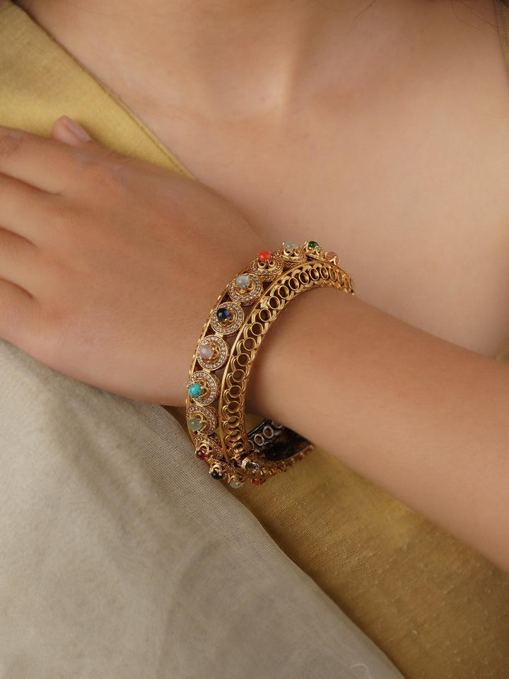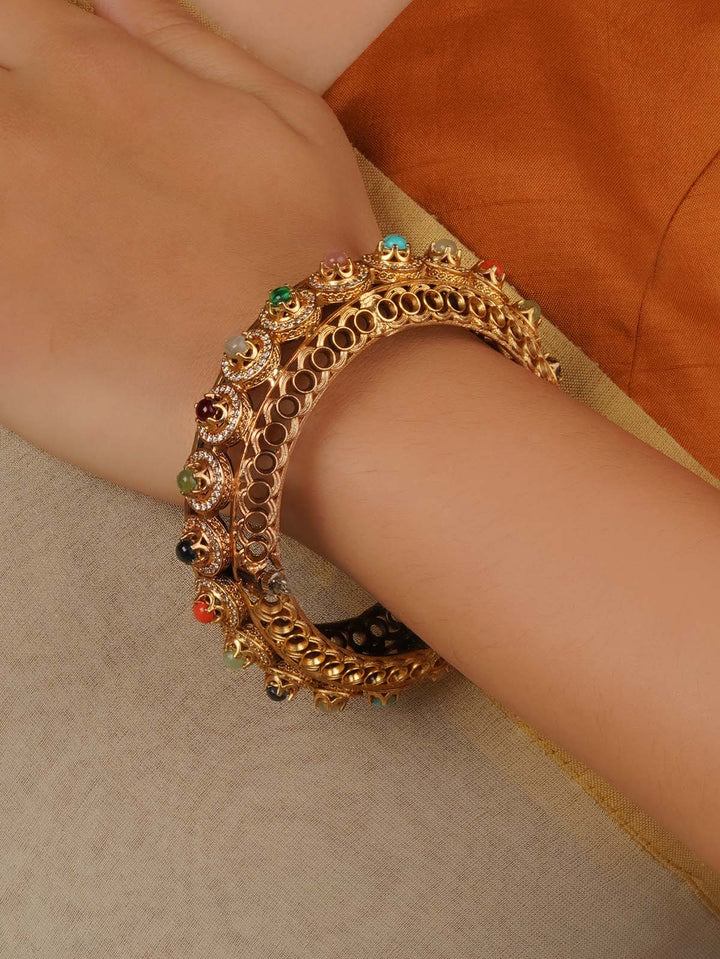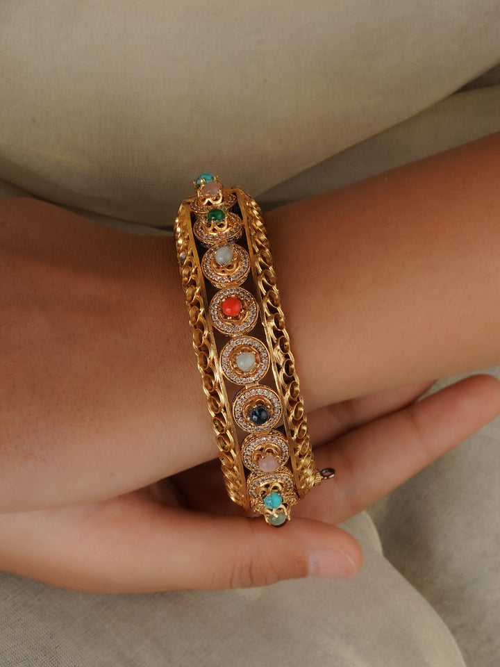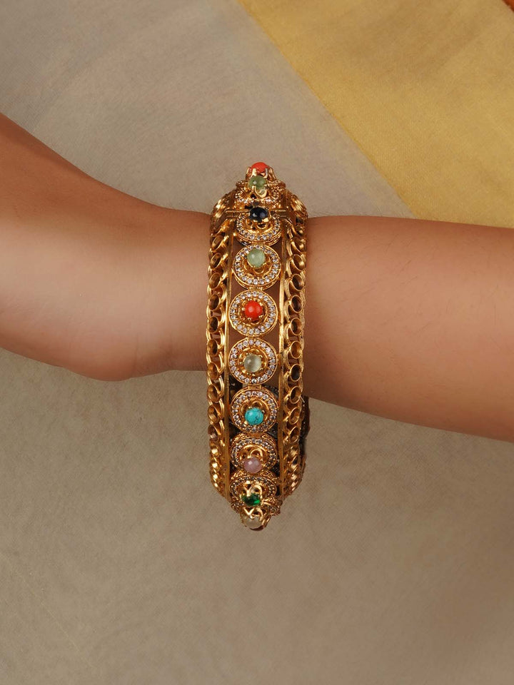 Gold Plated Navratna Bangle (1 Piece) - NR-BANGLE1N