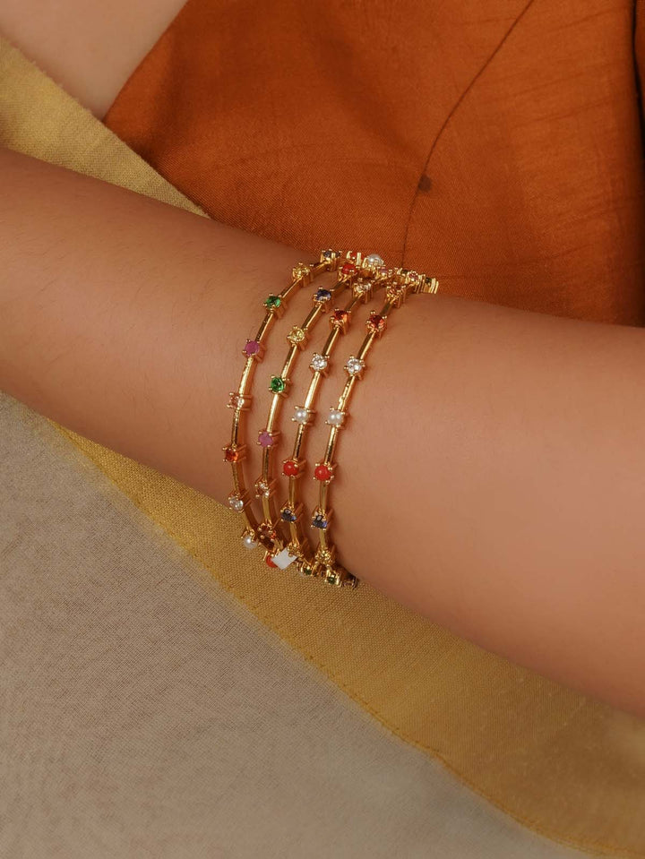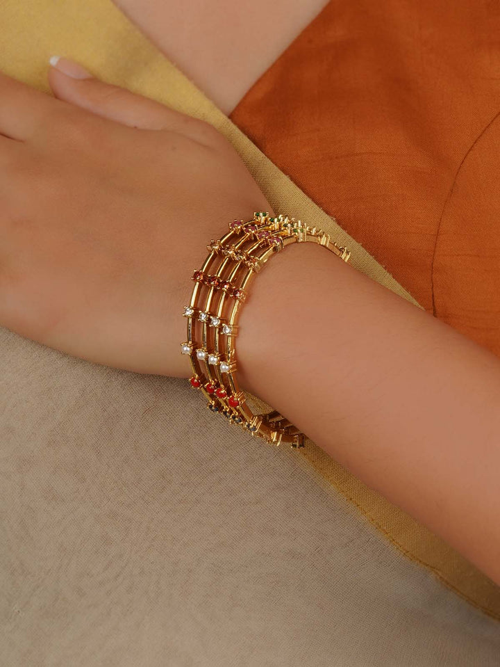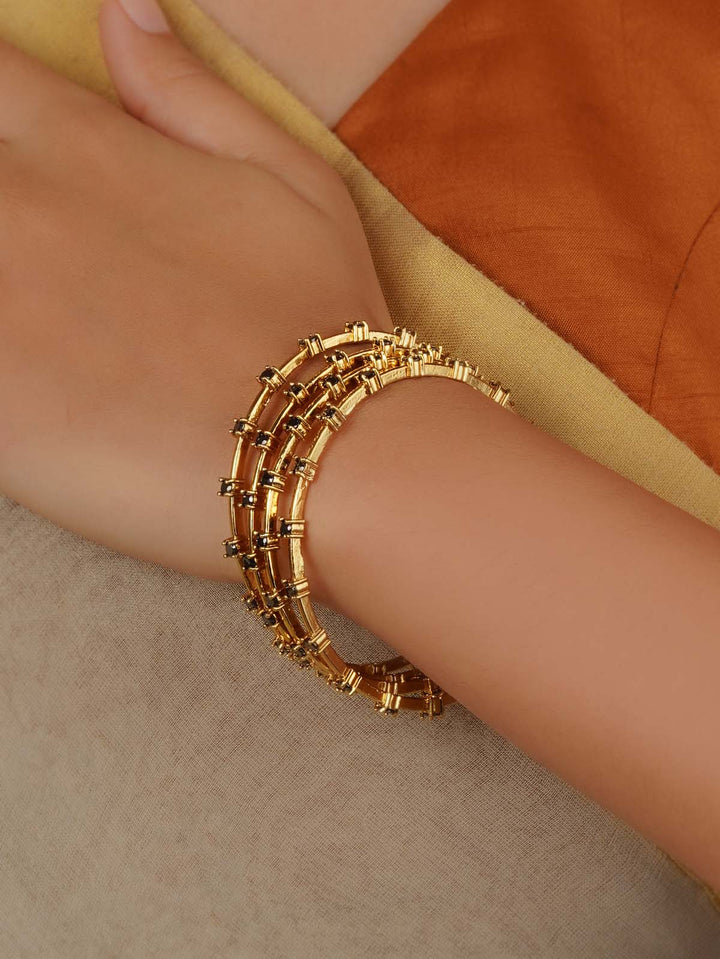 Gold Plated Temple Bangles (Set of 4) - TMPBAN117