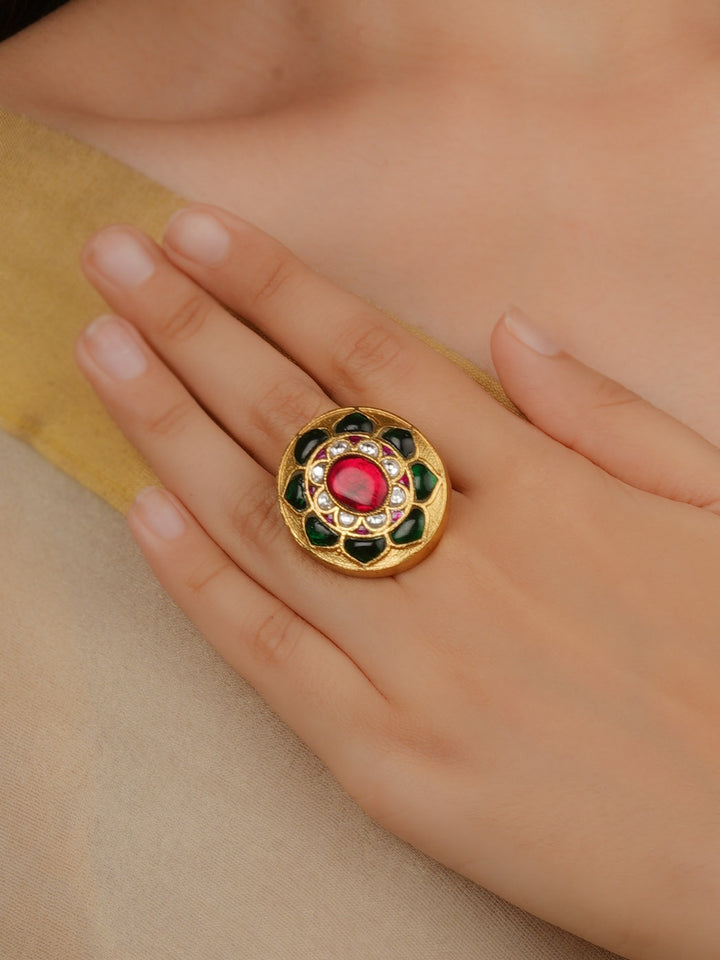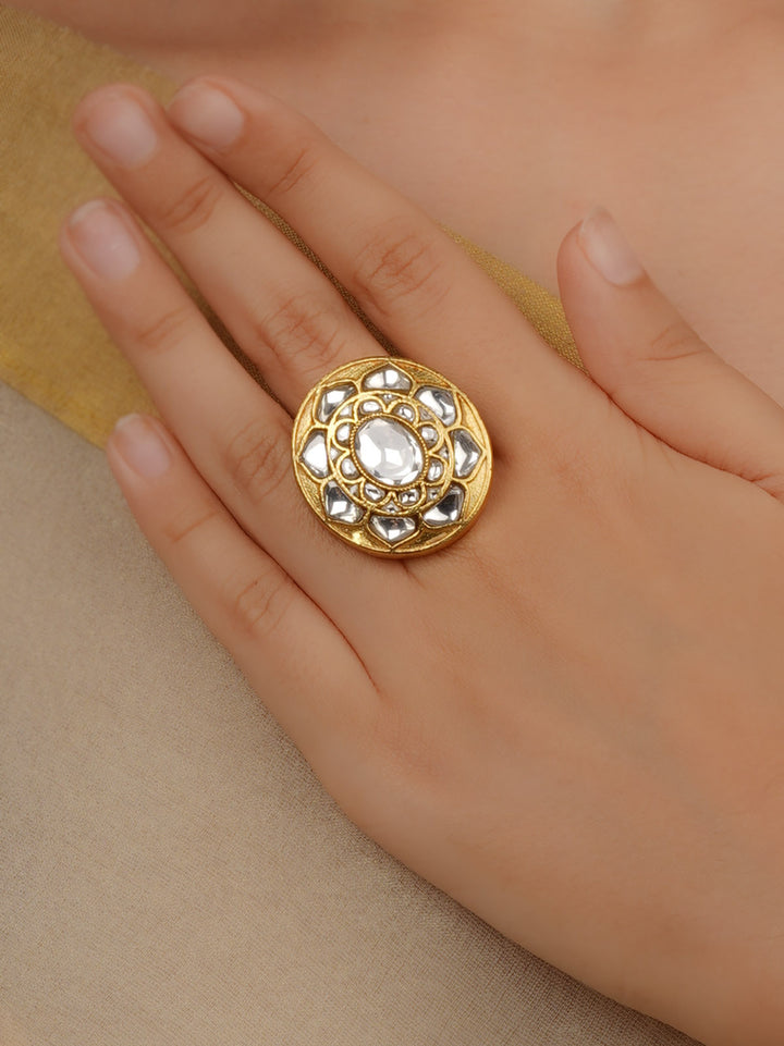 Gold Plated Thappa Jadau Kundan Ring - TJ-R74